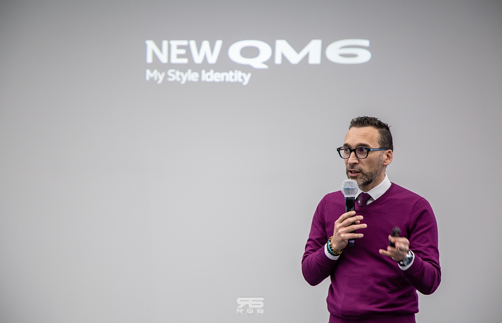 이어서, 페이스리프트가 진행된 NEW QM6 디자인에 대해 치프 디자이너 라파엘 리나리 디렉터가 NEW QM6 의 디자인 설명을 이어갔다. QM6 에는 한국적인 소재를 적용시켰으며, 디자인의 영감 역시 한국적인 요소들에서 받았다고 한다. NEW QM6의 경우에는 국내에서만 적용되는 페이스리프트 모델로, 7가지 요소들을 고려하여 만들었다고 한다. Different, Refined, COZY, Trust & Quality, Cost Efficient, ECO Friendly, Customer Care 가 그것이다.