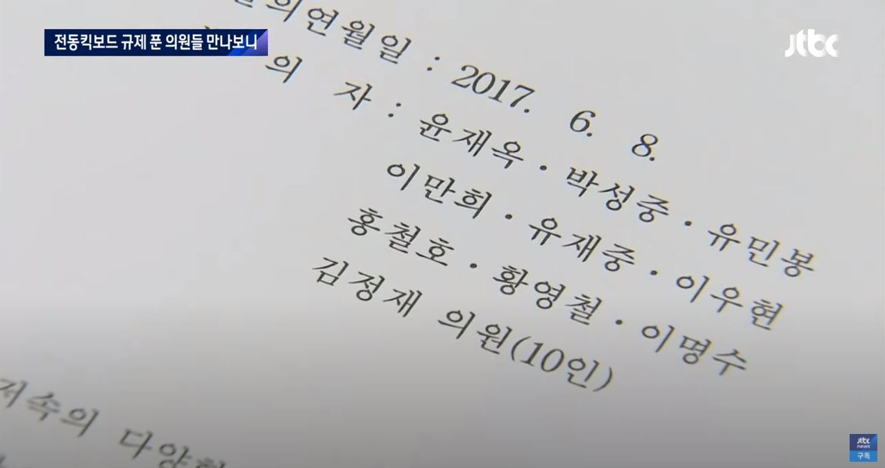 이렇게 현실인식이 부족해 전동킥보드 규제를 풀어준 사람들은 발의자 윤재옥 국민의힘 의원을 비롯해 같은 당 박성중 의원, 유민봉 의원, 이만희 의원, 유재중 의원, 이우현 의원, 홍철호 의원, 활영철 의원, 이명수 의원, 김정재 의원 등 10명이다. 전문성을 갖고 법을 만들어야 할 의원들이 전동킥보드 관련 법안 개정을 추진하면서 전동킥보드에 대해서는 전혀 모르는 것이었다. 이들이 도로교통법 일부개정법률안을 제출한 이유는 다음과 같다.