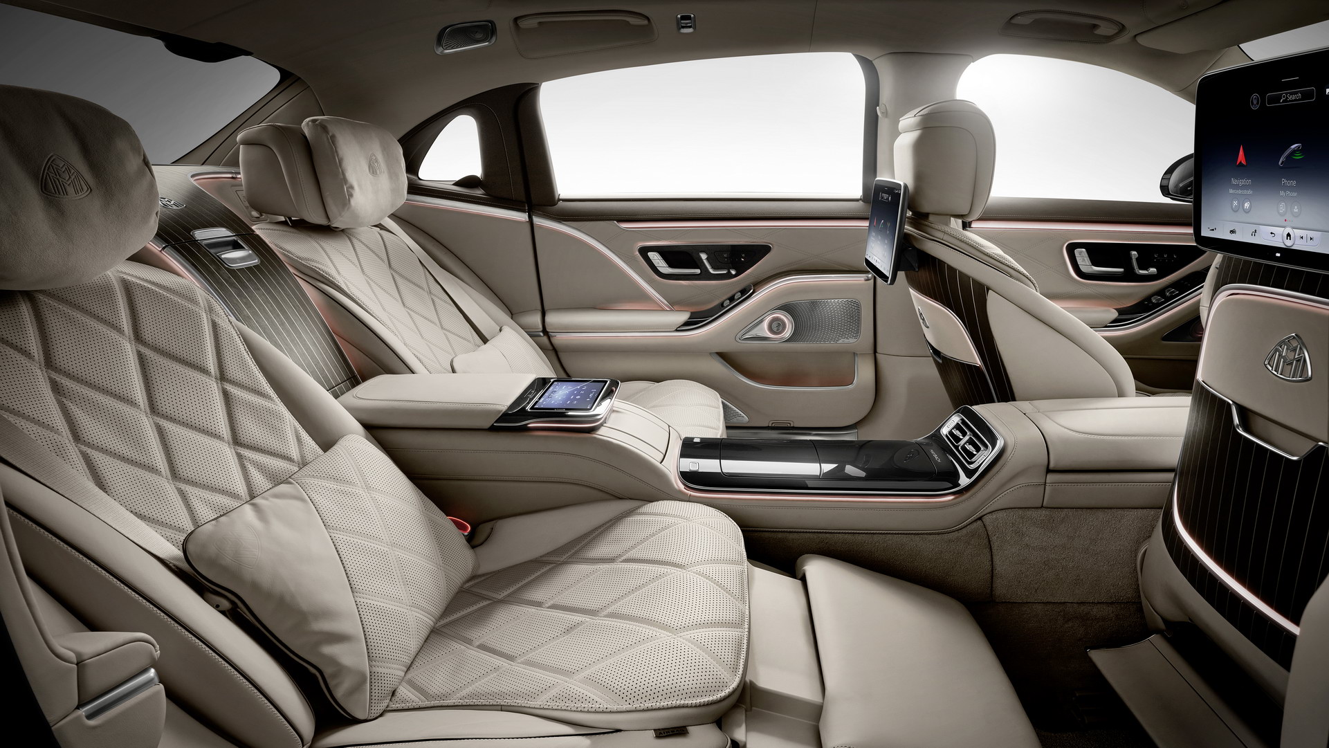 럭셔리카답게 뒷좌석 역시 편의사양과 넓은 공간을 보여주는데, 종아리 마사지 기능이 들어간 시트와 뒷좌석에서도 등받이 및 다리 받침대를 조절하는 리클라이닝 기능으로 주행 중 편안한 휴식을 취할 수 있도록 했다. 그리고, 뒷좌석의 인포테인먼트 시스템은 2개의 11.6인치 디스플레이가 적용되어 있으며, 열선, 통풍 등의 기능 역시 들어가 있다.