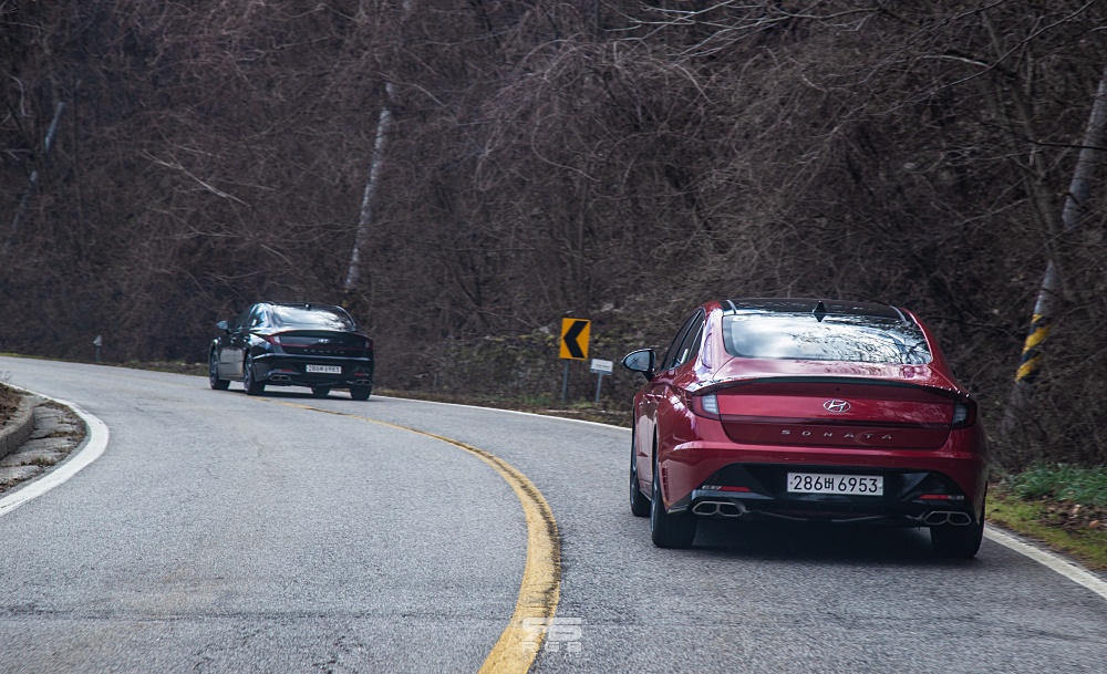 참고로, 쏘나타 N 라인은 새로워진 부싱을 사용해 서스펜션의 리바운드를 줄여 약간 하드한 세팅으로 바뀌었으며, 스티어링휠 역시 C-MDPS 에서 R-MDPS 로 바뀌어 묵직한 핸들링 감각과 함께, 코너링을 돌아나갈 때에 더욱 높은 신뢰감과 조작 편의성을 보여주었다.