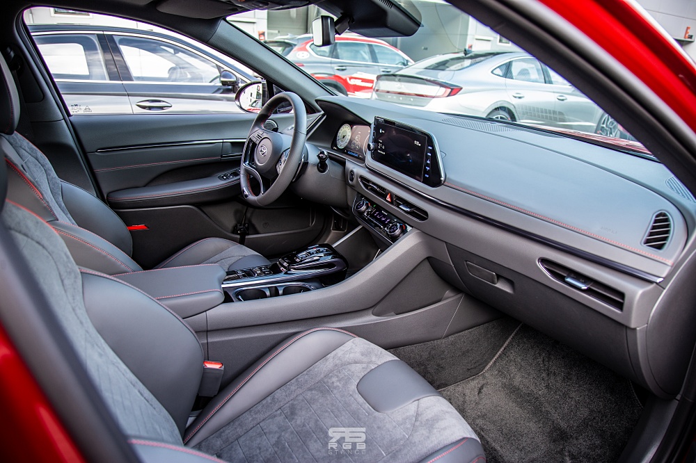 실내는 기존의 쏘나타와 큰 레이아웃의 변화를 보이지는 않고 있지만, 계기판에 유온과 토크 및 터보 부스트 압을 확인할 수 있는 게이지가 추가되었으며, 드라이브 모드에 'Sport +' 가 추가되었다. 이 외에도 다크 그레이와 레드 스티치의 포인트가 적용되어 스포티함을 더하고 있고, 시트와 함께 스티어링휠과 변속기 쪽에 N 로고가 각인되어 있다. 특히, 버킷시트는 스포티함을 강조해주고 있다.