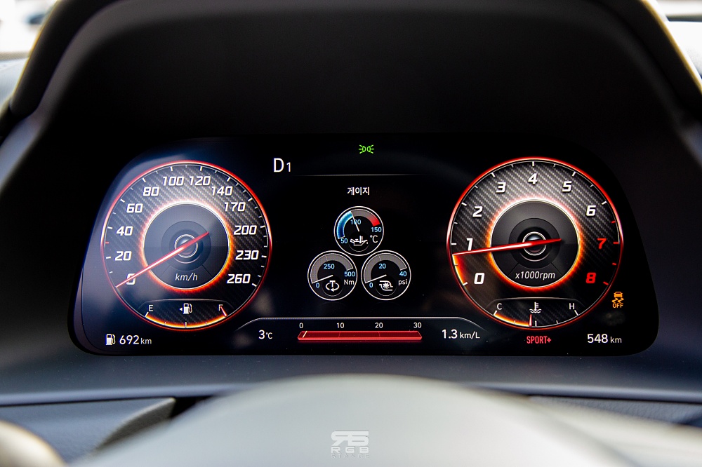 참고로, 쏘나타 N 라인은 새로워진 부싱을 사용해 서스펜션의 리바운드를 줄여 약간 하드한 세팅으로 바뀌었으며, 스티어링휠 역시 C-MDPS 에서 R-MDPS 로 바뀌어 묵직한 핸들링 감각과 함께, 코너링을 돌아나갈 때에 더욱 높은 신뢰감과 조작 편의성을 보여주었다.