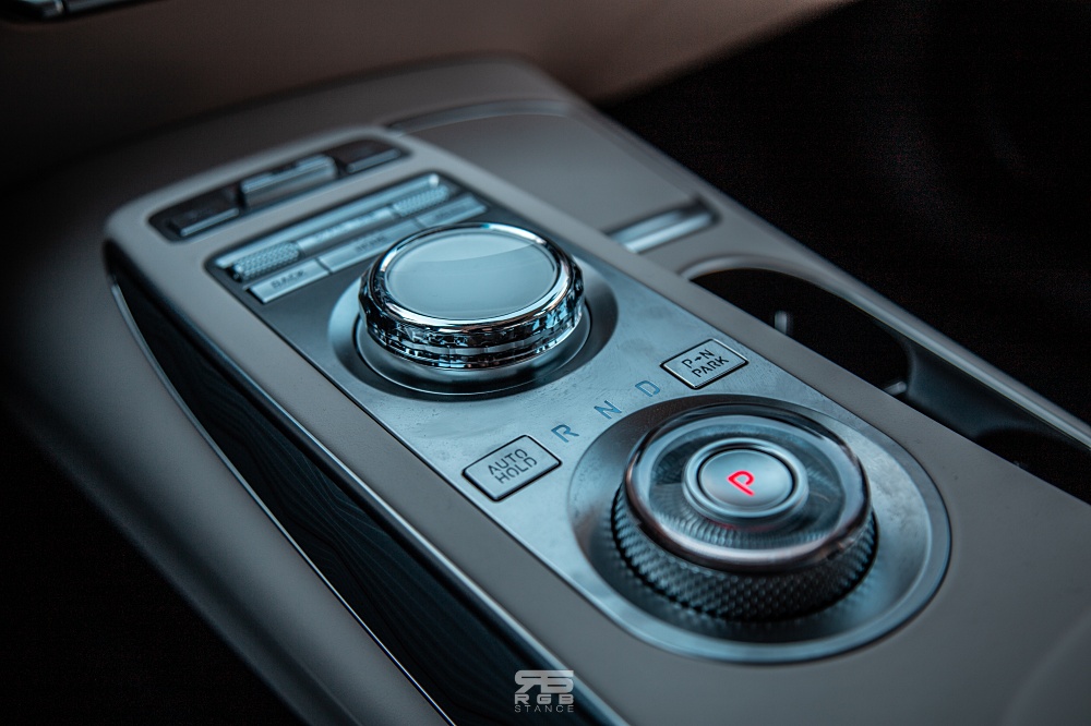 여기에 우아한 볼륨감과 쿠페처럼 떨어지는 C 필러는 후면부로 이어지는 쿼드램프까지 지금껏 봐왔던 제네시스에서 한단계 진화한 아름다움을 보여주고 있고, 세로형태의 독특한 배기구는 자세히 보면 프론트에서 보았단 크레스트 그릴을 옆으로 돌렸음을 알 수 있다.