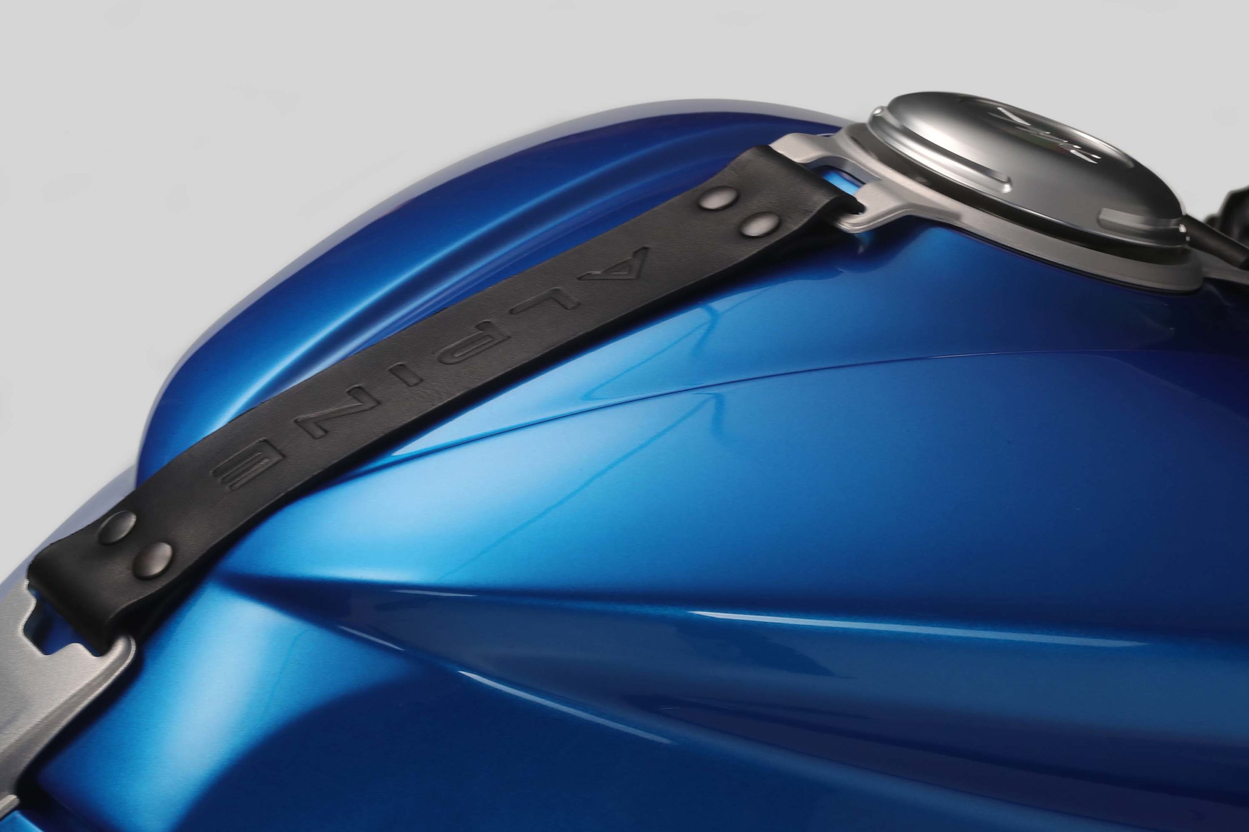 블루와 실버의 아름다운 조합을 보이는 수퍼벨로체 알핀은 알칸타라 안장과 휠 뿐 아니라, 알핀의 'A' 로고가 알핀과의 공통점을 이어가고 있으며, 연료 탱크의 가죽 스트랩 등의 디테일 역시 MV Agusta 수퍼벨로체 알핀과 A110 과의 디테일을 이어가고 있다.