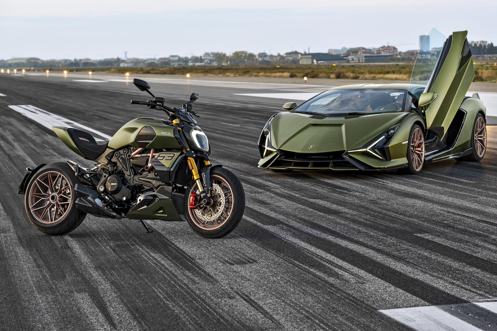 Ducati Diavel 1260 Lamborghini 는 람보르기니 시안(Sian) FKP 37 의 특징을 담은 슈퍼바이크인데, 두카티와 람보르기니 모두 폭스바겐 그룹의 브랜드이긴 하지만,이와 같은 협업은 처음이었다. 두카티 디아벨 1260 이 단 630대만 만들어지는 이유는 모델 명인 1260을 반으로 나눈 숫자이며, 람보르기니 시안에서 영감을 받아 장착된 골드 휠은 단조 휠로 경량화를 꾀했고, 카본파이버로 만들어진 에어인테이크와 라디에이터 커버 역시 람보르기니를 연상시키게 한다.
