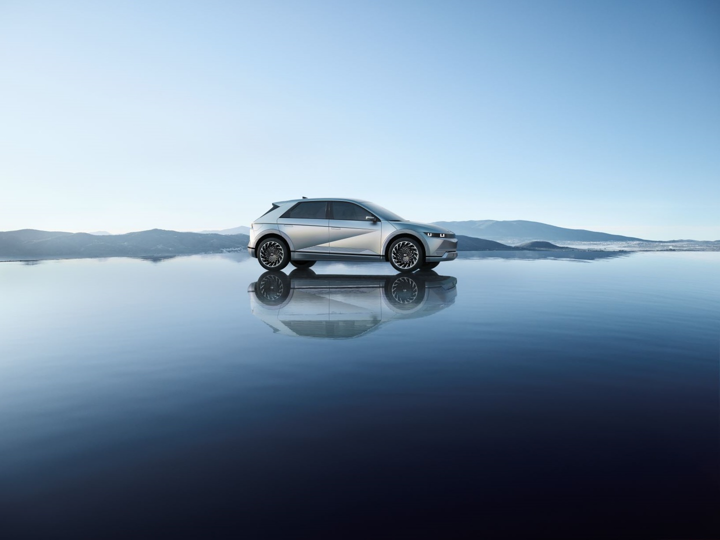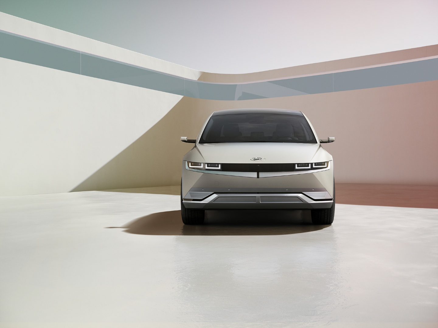 아이오닉 5의 전면부는 좌우로 길게 위치한 얇은 전조등이 인상적이며, 현대차 최초로 상단부 전체를 감싸는 클램쉘(Clamshell) 후드를 적용해 면과 면이 만나 선으로 이어지는 파팅 라인을 최소화함으로써 유려하면서도 하이테크한 이미지를 보여주고, 전면 범퍼 하단의 지능형 공기유동 제어기(AAF, Active Air Flap)는 주행 시 공기 흐름을 원활하게 함으로써 공기저항을 줄여주어 주행거리 연장에 기여하고, 역동적인 느낌도 주고 있다. 특히, 대형차 수준의 3,000mm 에 이르는 측간거리는 고객에게 디자인적인 아름다움을 선사하는 것과 E-GMP 기반 설계와 함께 혁신적인 실내 경험을 보여준다.