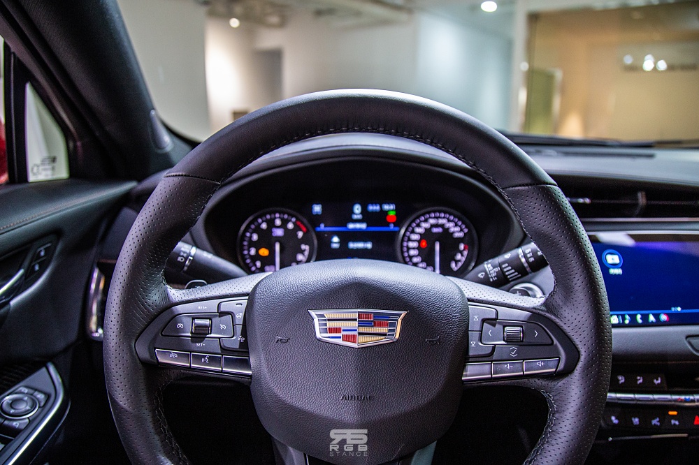 캐딜락 XT4 의 실내는 캐딜락만의 '컷 앤 소운(Cut and sewn)' 전략에 따라 실내 곳곳을 장인의 수작업으로 마감해 럭셔리한 소재의 강점을 극대화 했으며, 카본파이버 트림과 화이트 앰비언트 라이팅을 통해 실내를 더욱 고급스럽게 만들어주고 있다.