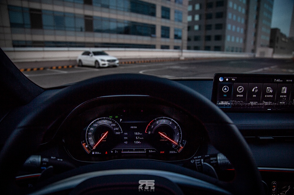 V6 3.5 T-GDi 엔진으로 380마력, 54.0kg.m 의 토크를 보여주는 GV70 3.5 SPORT 모델은 사륜구동방식과 더불어 운전하는 맛이 상당하다. 아쉽게도 초반 가속은 기대했던 것보다 부족하게 느껴질 수 있는데, 어느 순간 계기판을 보면 “벌써 이 속도야?” 라는 생각이 들 정도로 안정적이면서도 만족스러운 가속감을 보여준다. 여기에서 아쉬운 점이 바로 ‘배기음’ 이다. 액티브사운드 시스템을 통해 제법 많이 자연스러워진 사운드를 보여주지만, 실제로 N 모델처럼 고성능의 배기음을 내어준다면 달리는 감성은 더욱 깊은 맛을 낼 수 있었을 것 같다.