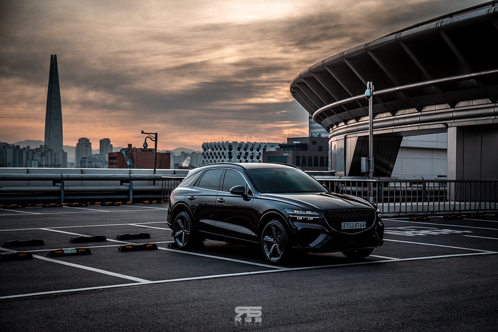 제네시스 GV70 은 역동적이면서도 우아한 모습 그대로다. 여기에 스포츠패키지 전용 프론트 범퍼와 G-Matrix 패턴의 21인치 휠과 다크크롬 가니쉬 및 대구경 배기구가 스포티함을 더해주는데, 기본적으로, 우아한 라인과 역동성의 조화로움이 매력적이다.