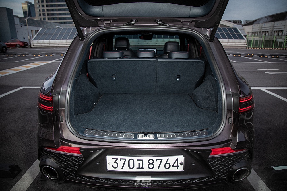 최근 제네시스의 디자인 완성도는 상당히 높아지고 있다. 스포티한 주행감각에 맞춘 디자인은 도심형 SUV 다운 신기술까지 담아내기에 잘 어울리는 모습인데, 프론트의 전면부를 보면, 크레스트 그릴이 헤드램프보다도 낮게 위치해 공격적인 이미지를 만들어주며, 쿼드램프가 역동성을 더욱 잘 느끼게 해준다. 사이드로 이어지는 아치형 라인인 ‘파라볼릭 라인(Parabolic Line)’ 은 상당한 우아함을 보여주기에 충분하고, 대구경 배기구는 확실히 스포티함을 강조해주고 있는데, 이 부분은 사실 살짝 아쉬웠다. 이정도라면 드라이브 모드 변경시 팝콘 튀겨주는 소리 정도는 나야 하는 것 아닌가? 하는 생각이 들었기 때문이었다.