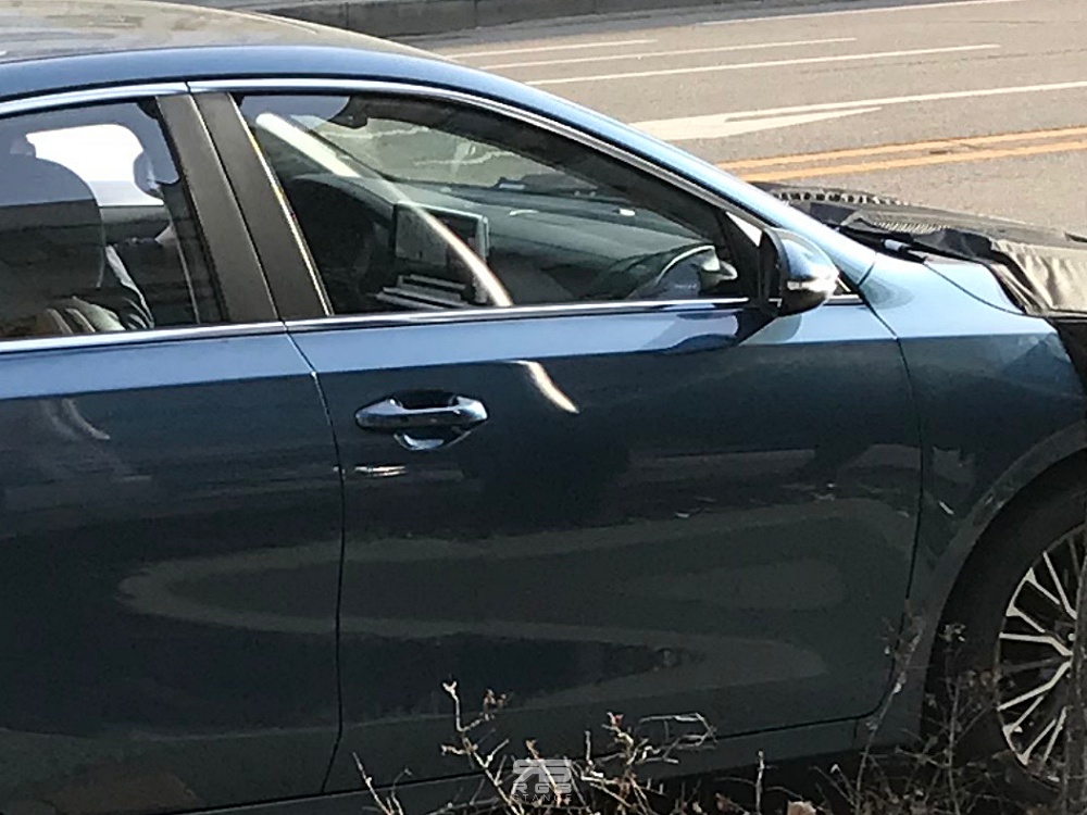 프론트쪽의 헤드라이트를 보면, DRL 형상이 기존의 X 자 형태가 아닌, 두줄짜리 LED 인데, 최근 공개된 기아 전기차 EV6의 헤드라이트 DRL 과 그 모습이 닮아있는 것을 볼 수 있다. 이제 EV6 를 시작으로, 헤드라이트의 형태 또한 바뀌는 것을 예상해 볼 수 있는데, 라디에이터 그릴도 바뀔 것으로 예상되며, 프론트 범퍼 하단에 위치한 센서를 통해 K3 에 주행보조시스템이 적용되면서, 현대 아반떼처럼 중형차를 위협할만큼의 안전 및 편의사양을 가득 갖출 것으로 기대된다.