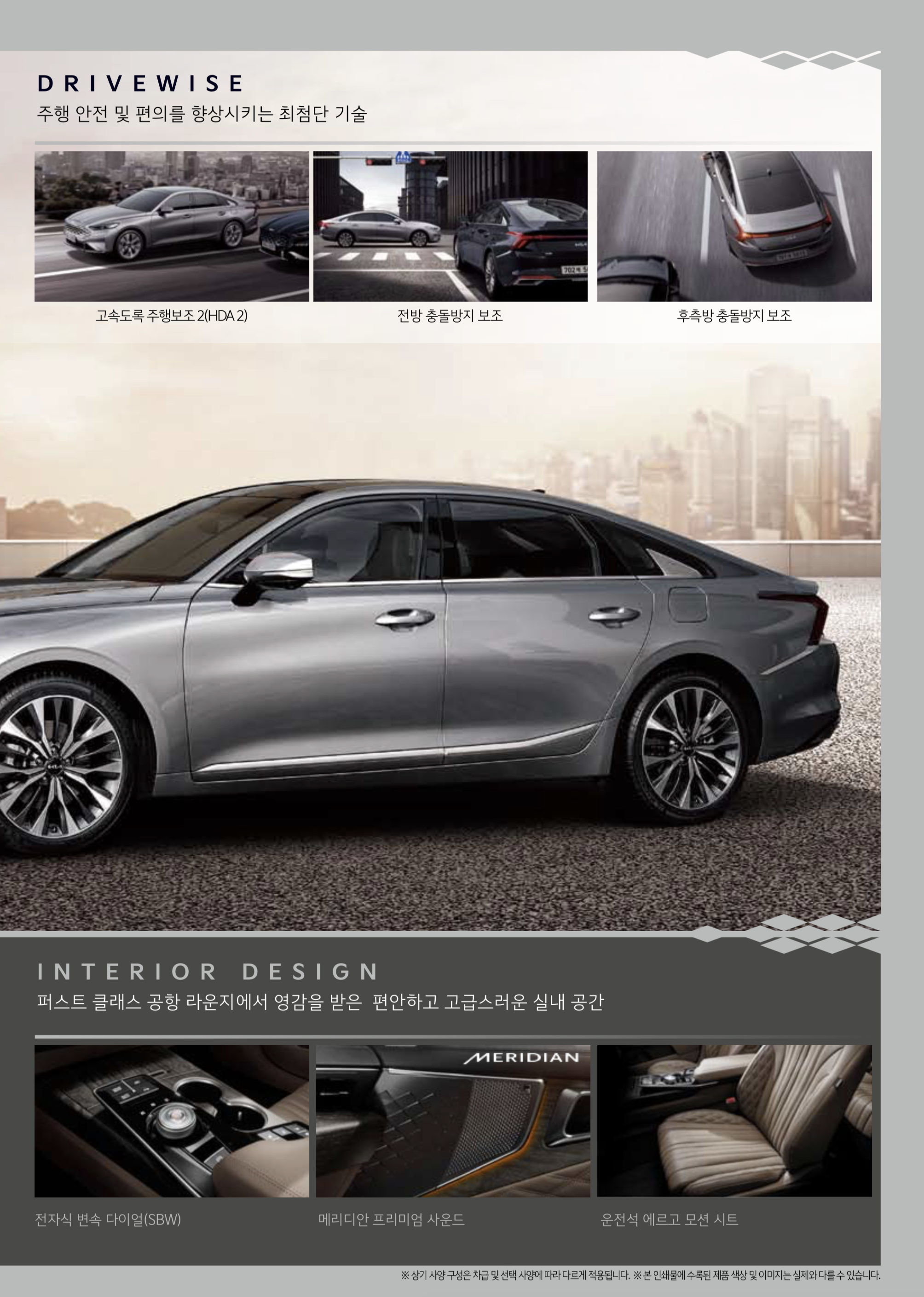 K8 에는 운전자의 부담을 줄여주는 첨단 운전자 보조 시스템이 가득 들어가 있다. '드라이브 와이즈' 는 운전자의 피로감을 낮추고 목적지까지 안전한 운전을 돕는 운전 보조 시스템으로, 기아의 가장 진보된 운전자 보조 시스템이다. K8 에 적용된 첨단 기술은 고속도로 주행 보조 2(HDA 2), 전방 충돌방지 보조(FCA), 스마트 크루즈 컨트롤(SCC), 원격 스마트 주차 보조(ESPA) 등이며, 이 외에도 후측방 모니터, 후방 주차 충돌방지 보조, 후측방 충돌방지 보조, 후방 교차 충돌방지 보조, 안전하차보조, 후석 승객 알림 등을 적용해 편의성과 안전성을 높였다.