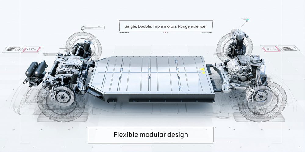 지리의 SEA EV 플랫폼은 A 세그먼트에서 D, E 세그먼트까지 활용 가능하며, 경차 및 상용차까지도 활용 가능하다고 한다. 그리고, 목적에 따라 전륜구동 혹은 후륜구동, AWD 등으로 구성할 수 있으며, 듀얼모터 등으로 바꿀 수 있고, 제로백 3초, NEDC 기준 700km 의 거리를 주행할 수 있는 배터리와 모터를 넣고, 무선 소프트웨어 업데이트 제공 및 안전기준 등을 만족시킬 수 있다고 한다. 그리고, 대량생산이 가능한 시스템으로, 오픈소스 플랫폼의 형태를 띄게 될 것이라고 한다.