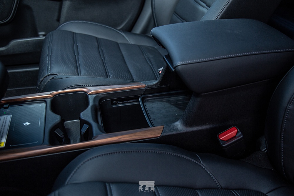 혼다 CR-V 하이브리드는 북미시장에 잘 어울리는 차량으로 보여진다. 실내 수납공간의 배치는 상당히 실용성 있는데, 특히 눈에 띄는 부분 중 하나가 3모드 센터콘솔 수납 공간으로, 투박한 듯 하면서도 실용성을 잘 보여주고 있으며, 도어쪽의 수납공간도 물병 등 다양한 수납이 가능하다.