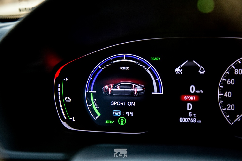 일단, i-VTEC 앳킨슨 사이클 엔진이 부드럽게 가속하다가 전기모터가 개입이 되는데, 상당히 자연스러우면서도, 전기차처럼 가속되는 느낌이 굉장히 시원시원하다. 고속도로에서 가속시 e-CVT 의 위이잉~ 하는 소리가 살짝 아쉬워 가속이 더딘가 싶어 계기판을 보면 속도가 꽤 빠른 편으로, 이질감 없는 즉각적인 반응을 보여주는 동시에 복합연비 17.5km/L 로 연비까지도 상당히 준수한데, 실제 주행시에는 더욱 뛰어난 연비를 보여주어 상당히 만족스러웠다.