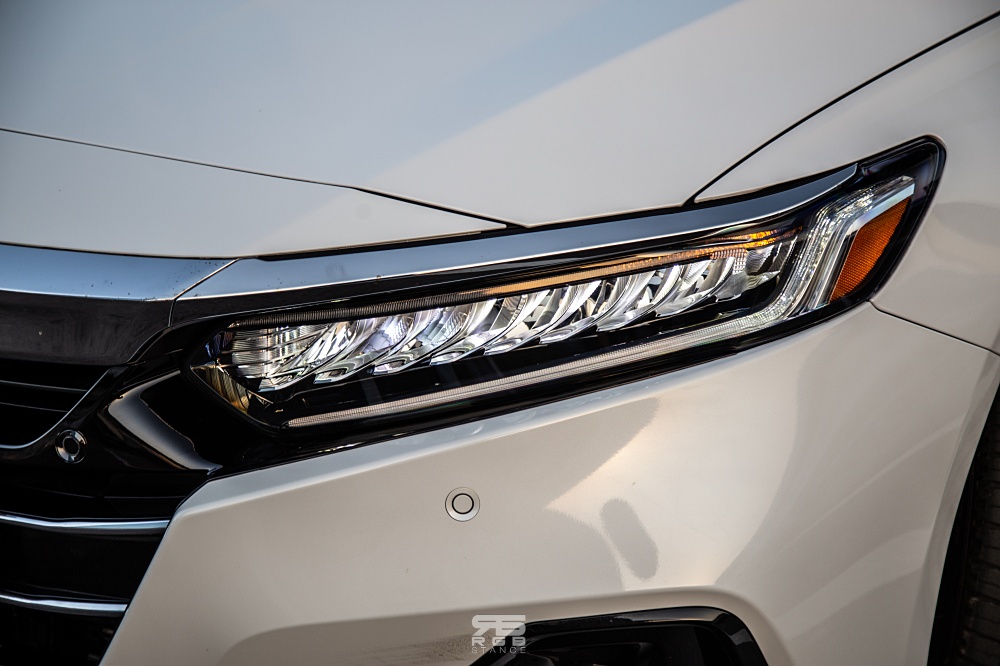 혼다 어코드 하이브리드는 하이브리드 전용 패키지의 스포티한 모습을 띄고는 있지만, 전면부의 크롬장식을 제외하고서는 눈에 띄는 화려함은 딱 하나로, 헤드라이트가 눈에 띈다. 이전 세대 모델과 비교해 크게 바뀐 부분은 없지만, 하이브리드임을 알 수 있는 푸른색 혼다 엠블럼과 함께 헤드라이트는 중형 세단다운 중후한 느낌을 내기에 충분하며, 측면을 보면, 패스트백 스타일로, 스포티한 느낌을 내주고 있다. 여기에 사이드 캐릭터 라인이 차량을 더욱 단단하게 보이게 만들고 있으며, 뒤쪽을 보면 테일램프가 고급스럽고 다이나믹한 모습을 연출해주고 있다.