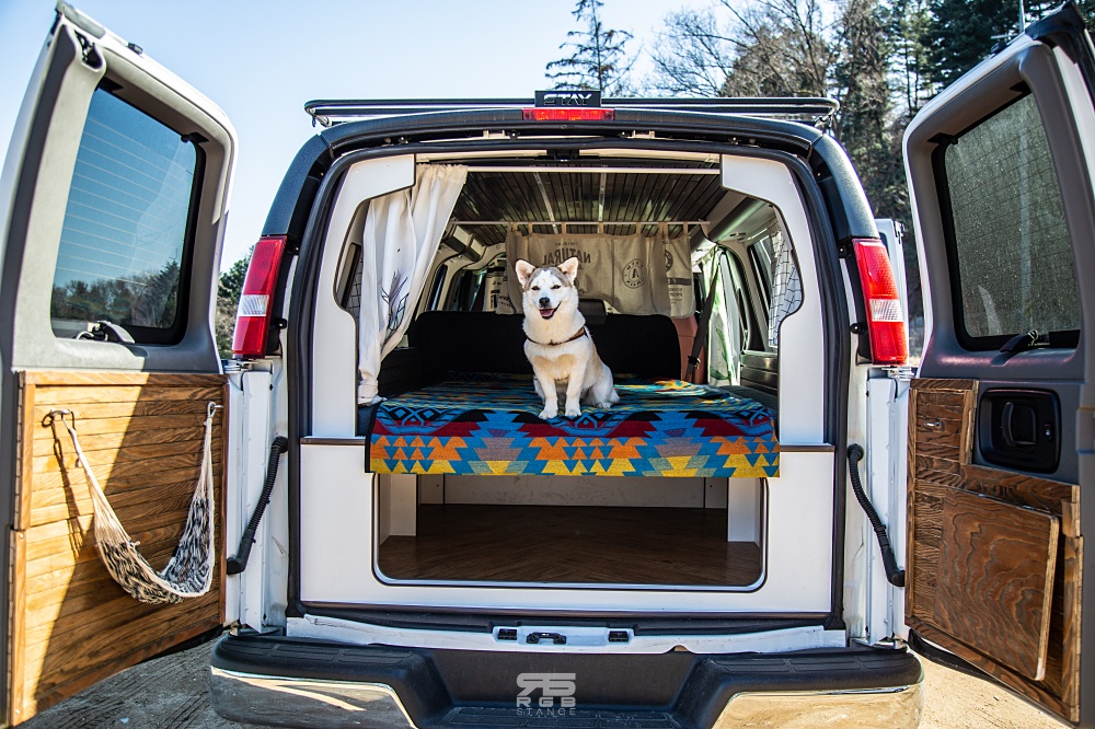 캠퍼밴인 만큼, 캠핑을 위한 이동식 냉장고와 수납장이 있으며, 3열 시트 위로 침대 겸용 평상이 있다. 여기에 루프탑까지 사용하면 최대 5명까지 취침이 가능하다. 침대 아래로는 수납공간이 충분해서 강아지나 고양이 혹은 아이들이 숨바꼭질 하기에도 충분하며, 다양한 캠핑용품을 수납할 수 있다. 그리고, 뒷문을 열면 간이테이블 등도 사용 가능하다.(의자로는 사용할 수 없다)