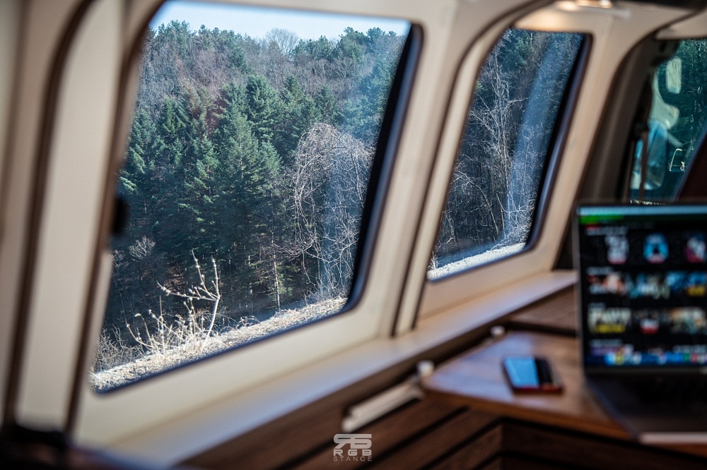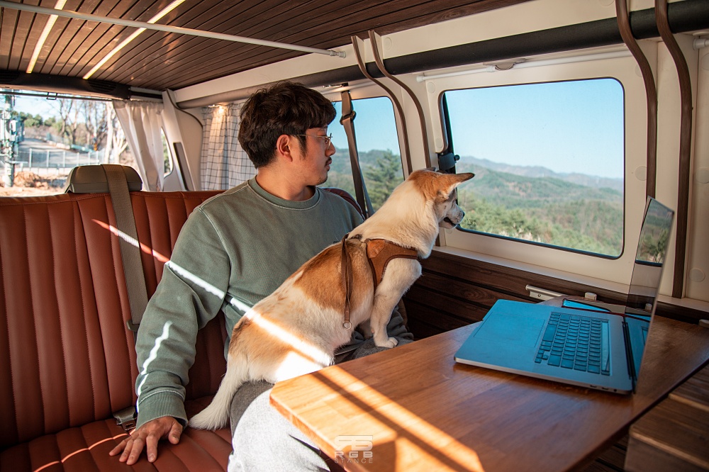 실내로 들어와보면, 요즘 하이리무진에 들어가는 TV 는 없지만, 테이블 위에 노트북을 올려놓고 영화감상을 한다거나, 음식을 먹는다거나 등을 즐기기에는 전혀 아쉬울 점이 없다. 인산철 400A 배터리를 통해 무시동 히터 / 무시동 에어컨 기능을 이용할 수 있으며, 주행 중 충전 혹은 외부에서 충전이 가능하다. 시동을 꺼놓고도 히터와 에어컨을 사용할 수 있어서 여유로운 캠핑이 가능하다. 조용히 아무것도 신경쓰지 않고, 창 밖 풍경들을 즐길 수 있다는 것이다.