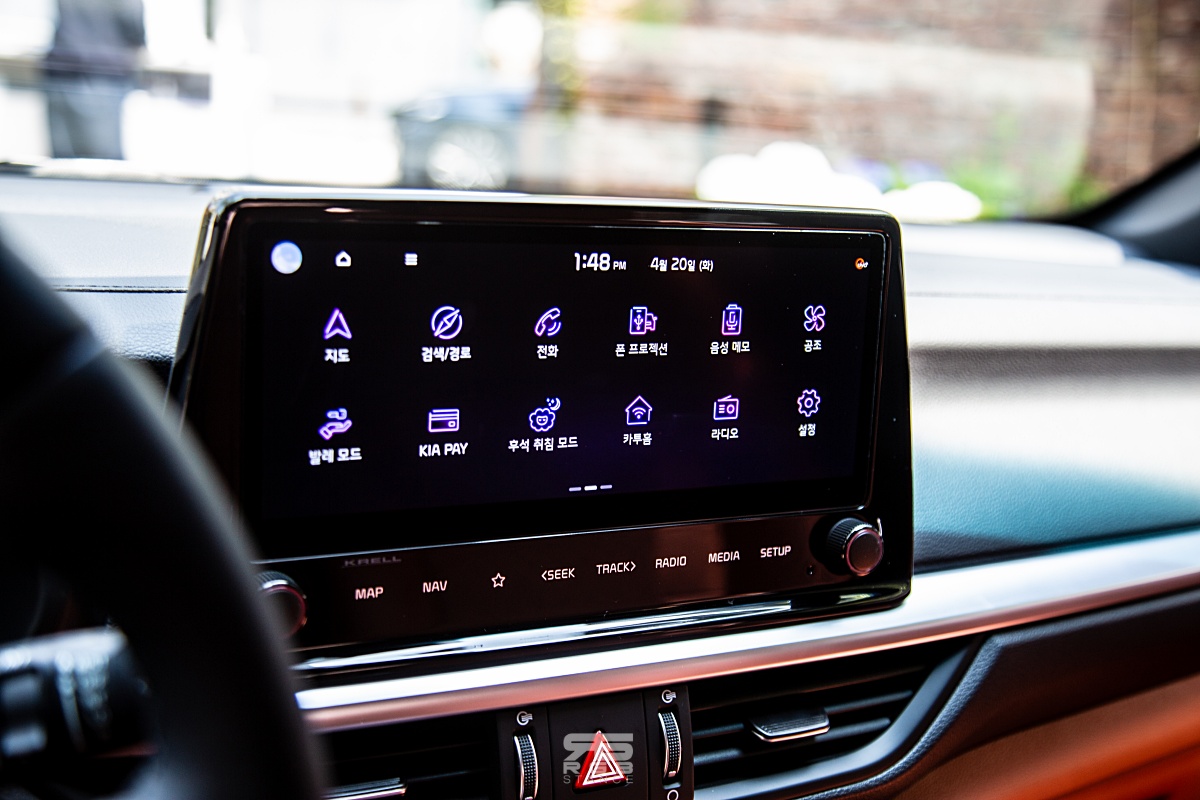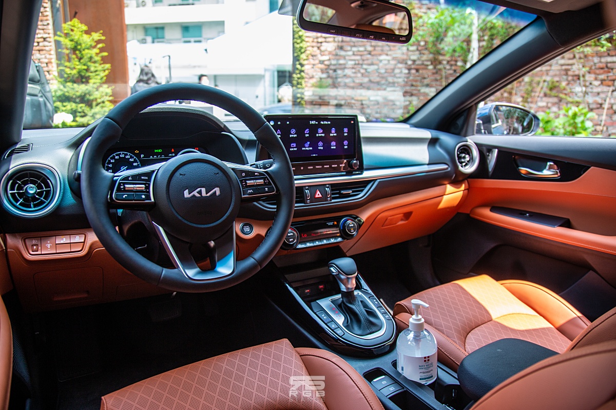 실내에서 눈에 띄는 점은 일단, 10.25인치로 커진 대화면 유보(UVO) 내비게이션과 10.25인치 슈퍼비전 클러스터. 그리고, 오렌지 브라운 컬러의 실내가 상당히 눈에 띈다. 하이테크한 분위기의 내비게이션과 계기판과 더불어, 높은 채도의 오렌지 브라운은 고급스러움까지 보여주고 있다.(오렌지 브라운 : 1.6 가솔린 모델 전용)