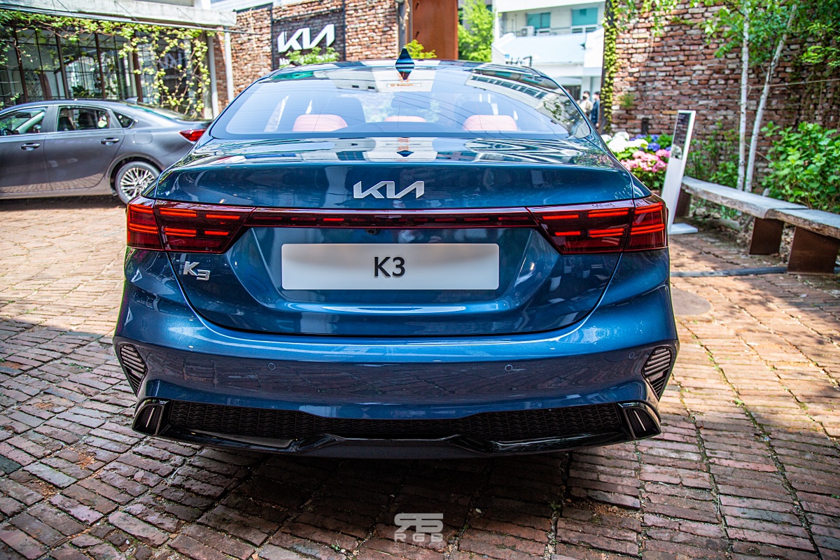 더 뉴 K3 의 후면부를 보면, 가로지향적 디자인에 입체감을 살렸고, 테일램프 역시 헤드라이트와 마찬가지로 속도감을 형상화한 것과 함께, 리어 디퓨져의 형상 역시 스포티하게 바뀌었다.