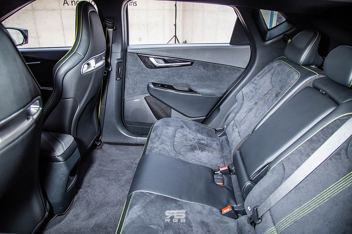 EV6 역시 릴렉션 시트 모드가 있지만, 다리 받침은 없다. 하지만, 아주 넉넉한 실내공간은 2열에서의 뛰어난 거주성을 보여주며, 친환경 공정의 나파가죽 시트와 아마씨앗 추출물 등 다양한 친환경 소재와 공법을 사용하였고, 앰비언트 라이트를 적극 활용하여 실내에서의 감성을 끌어올린 모습이 인상적이다. 여기에 메르디안(Meridian) 스피커가 적용되어 있어 음악을 즐기기에 더욱 좋다.