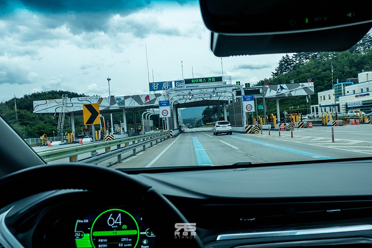 볼트 EV 는 스펙상 1회 충전으로 414km 를 갈 수 있는 66kWh 의 리튬이온 배터리와 150kW(204마력), 36.7kg.m 의 토크를 보여주는 싱글모터 시스템을 갖추고 있으며, 원페달 드라이빙과, Regen on Demand 기능을 활용해 탄력적인 에너지 관리가 가능하다. 분명, 이번 여행에서 원페달 드라이빙 및 리젠을 자주 사용했다면 아마 주행거리는 더 길게 나올 것이지만, 조수석의 요청으로 승차감을 위해 원페달 드라이빙은 전혀 사용하지 않았다. 그리고, 마찬가지로 조수석의 요청으로 에어컨의 사용은 최소화하고, 창문을 살짝 열어 강원도의 자연바람을 느끼며 주행을 했다. 참고로, 에어컨을 작동시키자마자 주행가능거리가 30km 이상 감소하는 것을 확인했다.