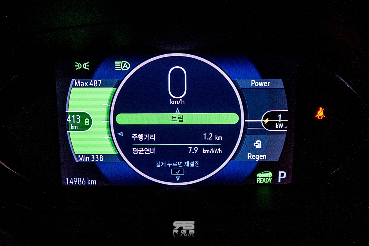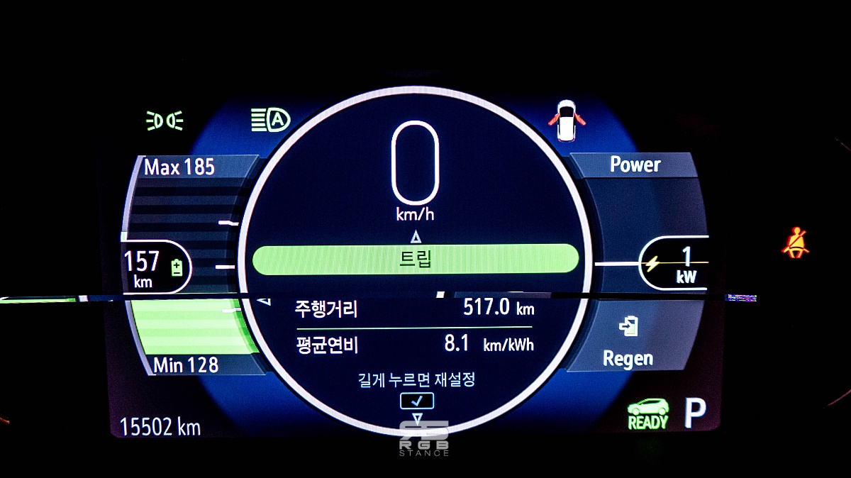 80% 충전을 한 상태에서 주행가능거리는 389km 였으며, 도착하고 남은 주행가능거리는 157km 였다. 만약, 충전을 하지 않고 에코주행을 했다면 충전 없이 508km 의 거리를 주행할 수 있었을 것이다. 그랬다면, 도착하기 전에 차가 멈춰섰겠지만, 계산해보니 414km 라는 스펙상의 주행가능거리를 뛰어넘는 스펙을 보여주었다는 점에서 살짝 놀라게 된다.