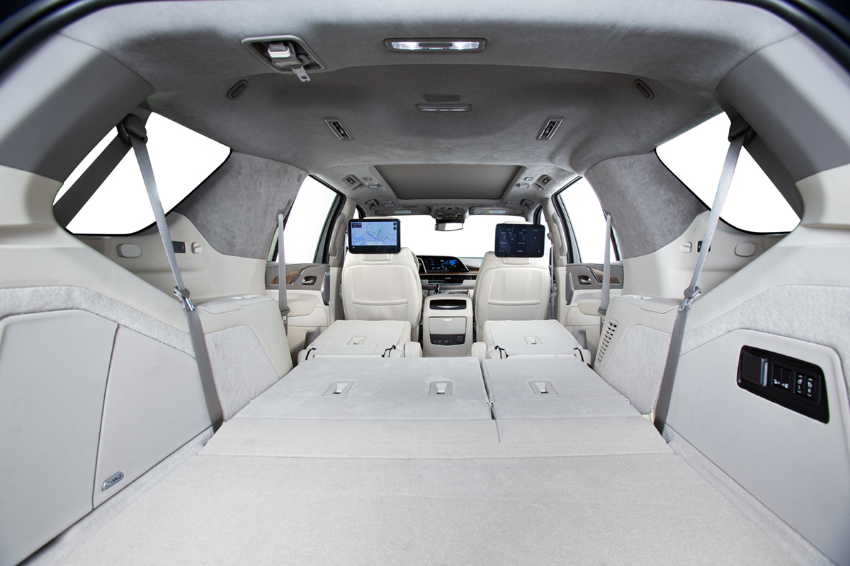 트렁크는 기본적으로 722리터의 적재 용량을 보여주며, 3열 폴딩시에는 2,065리터, 2열과 3열을 모두 폴딩할 시에는 3,427리터의 적재 용량을 보여준다.