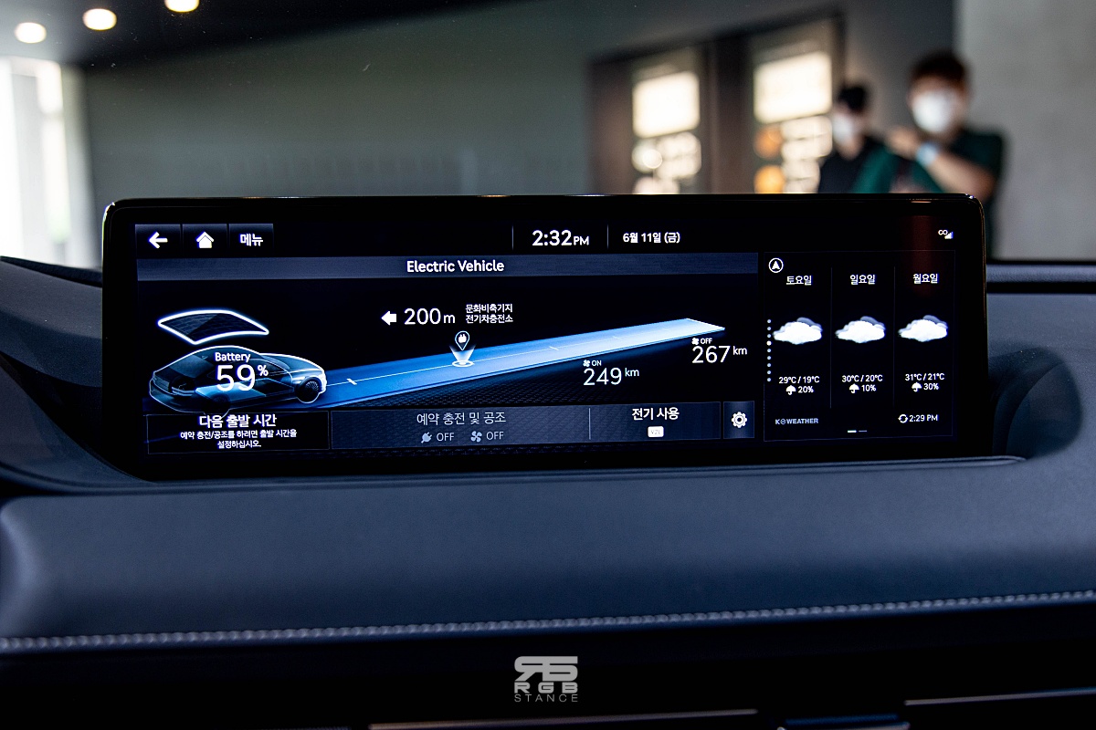뒷좌석 공간 및 실내 높이 등은 다소 협소하게 느껴진다. 전동화 모델로 바뀌었지만 프레임은 그대로이기 때문으로, 바닥이 살짝 높아졌고, 솔라루프의 적용으로 천장 또한 낮게 느껴지고 있다. 하지만, 레그룸 자체는 G80 과 동일하다.