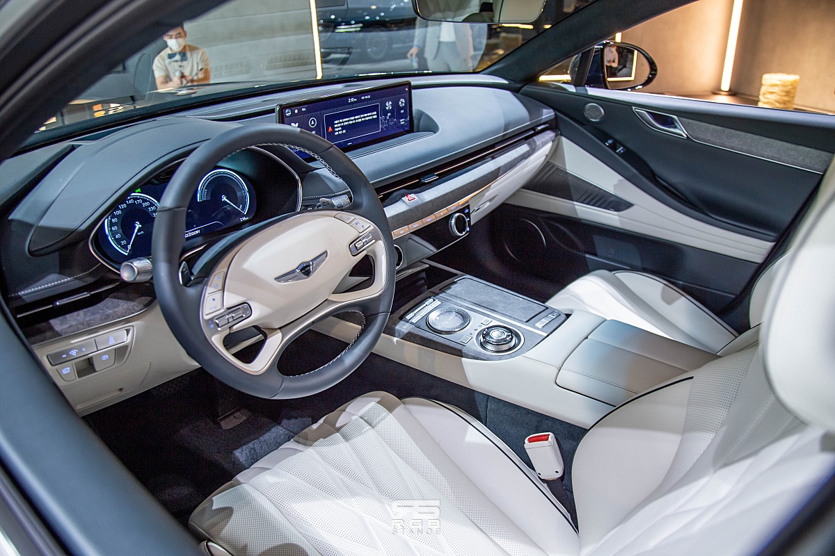 제네시스 eG80 은 겉으로는 G80 과 큰 차이를 보이지 않는다. 올해 하반기에 출시 예정인 eG80은 G80 의 전동화 모델로, 87.2kWh 배터리로 1회 충전시 국내 기준 427km 의 거리를 주행할 수 있으며, 136kW, 350Nm 의 전기모터를 전륜과 후륜에 적용해 최대 370마력(272kW), 최대 700Nm 의 토크를 발휘하며, 400V/800V 멀티 급속 충전시스템 및 V2L 기능을 갖춘 대형 전동화 세단이다.