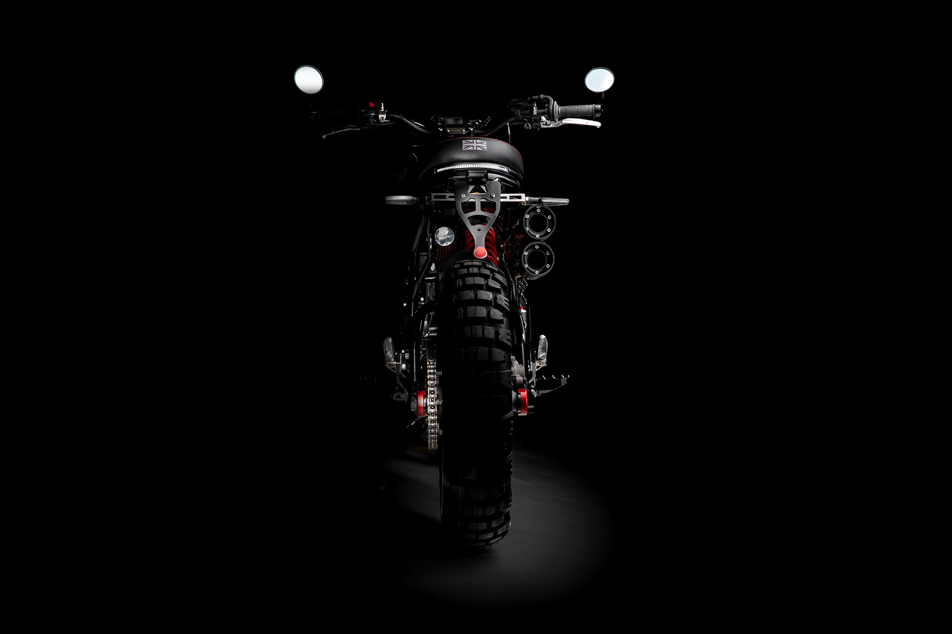 영화 속에서 블랙 위도우가 타고 다니는 바이크는 '블랙아웃' 모델로, 블랙 컬러가 베이스이며, 레드컬러 포인트를 주고, 커스텀 배기 시스템과 포크 가드 및 카본 헤드라이트 등이 적용된 모델로, 600cc 엔진으로 55마력, 50Nm 의 토크를 보여준다. 전륜에는 19인치, 후륜에는 17인치 스포크 휠 세트와 오픈 블럭 트레스 오프로드 타이어가 적용되어 있어 거친길도 마음껏 달릴 수 있다. 무게는 145kg 로, kg 당 0.41마력의 출력을 보여준다. 그런데, 180대 한정판매되는 '한정판' 바이크이며, 가격은 8,995파운드. 한화 약 1,404만원이다.