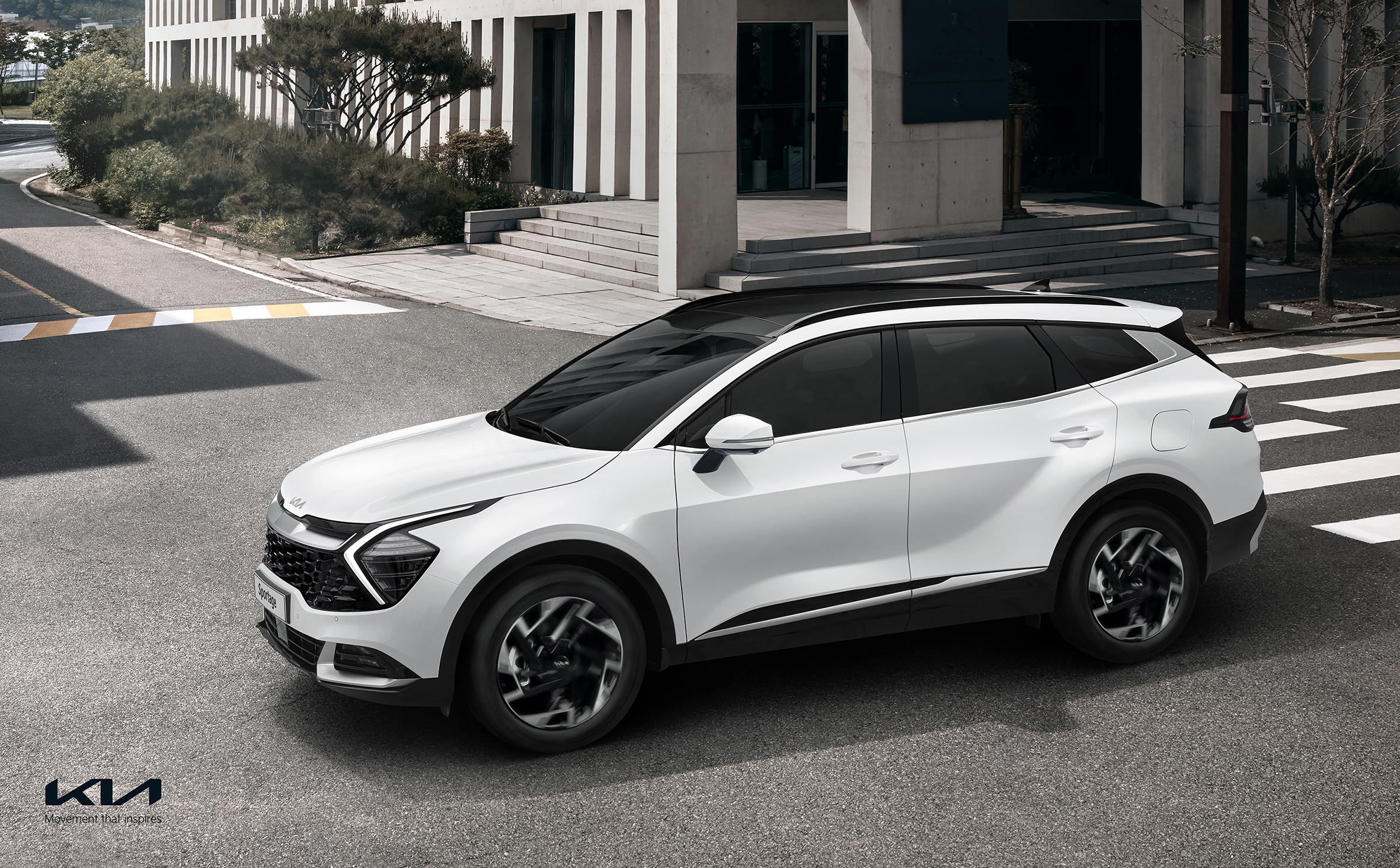 신형 스포티지의 외관은 자연의 역동적인 감성을 기반으로 과감하고 도전적인 디자인 요소를 적용해 존재감을 강조했다. 차량 전면은 블랙 컬러의 하이테크적인 패턴을 적용한 타이거 노즈 대형 라디에이터 그릴과 날렵한 LED 헤드램프를 연결해 당당하고 미래지향적인 이미지를 구현했다. 측면은 웅장하고 스포티한 바디 실루엣에 입체적인 볼륨을 더해 전체적으로 균형감이 느껴지며 후면은 좌우로 연결된 수평형 가니쉬(장식)와 날렵한 리어램프를 통해 심플하고 안정적인 이미지를 연출했다.