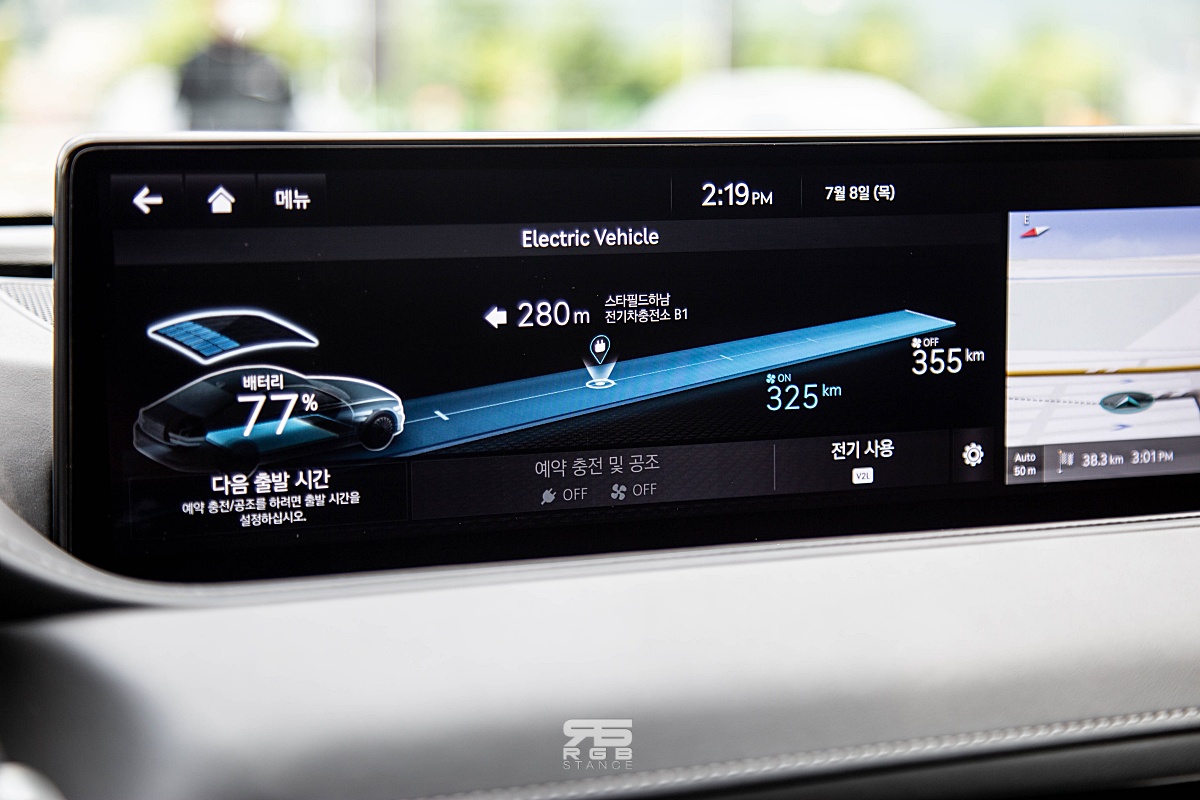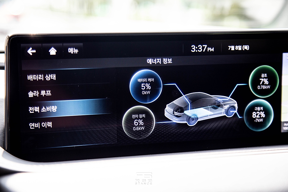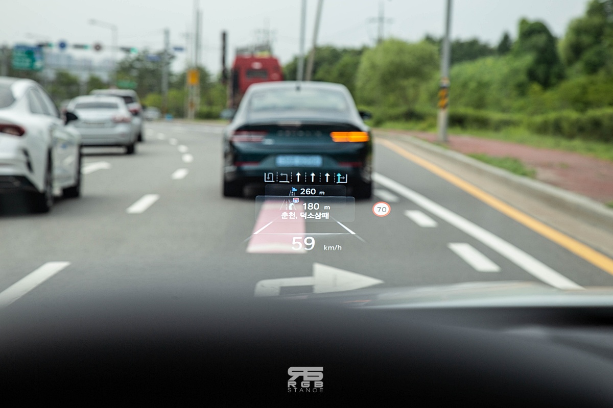 시승코스는 하남 스타필드에서부터 가평 마이다스 호텔까지 왕복 78.9km 를 주행하는 것이었으며, 일반 도로와 고속도로를 번갈아 주행했다. 일단, 악셀을 발을 올리고 가속을 시작한 순간, 부드러우면서도 매우 강력한 토크감을 느낄 수 있었으며, 고속주행시 시원한 가속감을 보여주었다. 그리고, 보통 흔히 전기차를 타면 들리는 특유의 고주파음이 들리지 않아 매우 조용한 것을 경험할 수 있었는데, 많은 부분에서 고성능과 럭셔리세단이 보여주는 감성의 밸런스를 잘 잡아준 듯 하다. 특히, 정숙성을 더해주는 ANC-R(Actice Noise Control – Road) 기능은 조용한 전기차를 더욱 조용하게 만들어준다.