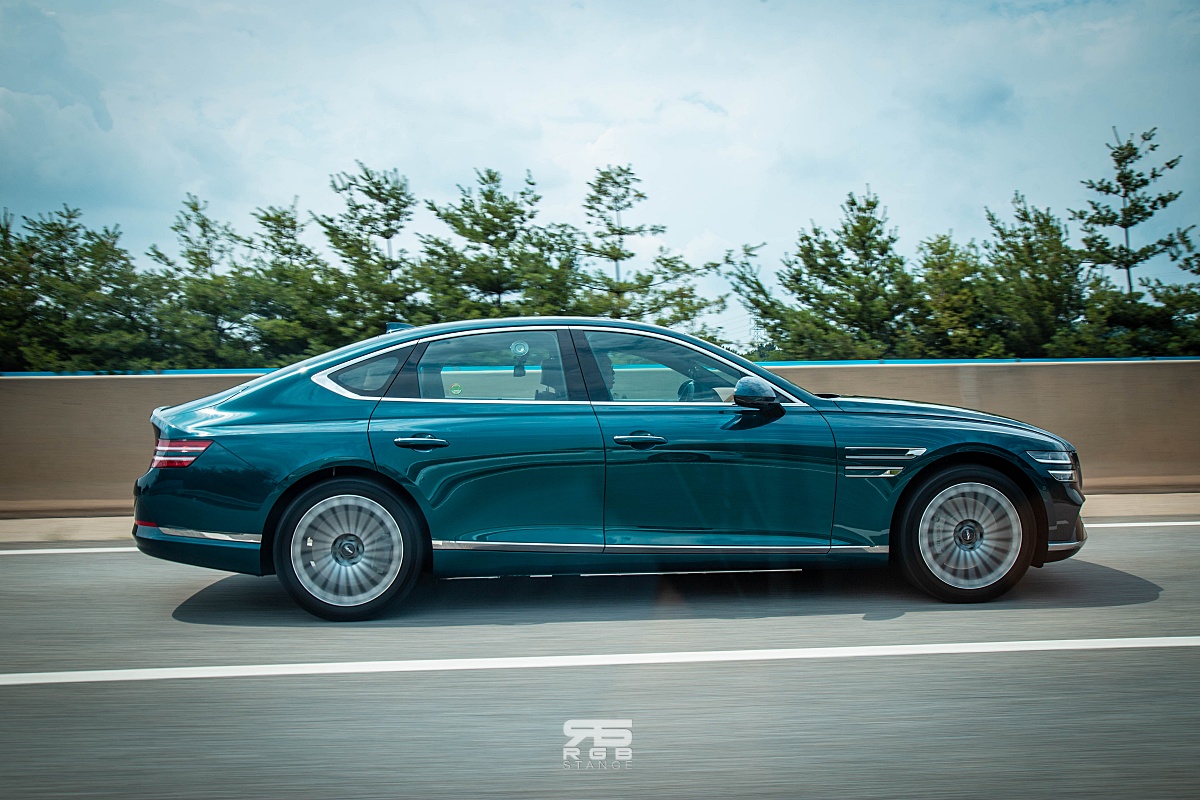 고속도로로 올라가는 순간, 질주본능을 너무나도 쉽게 자극해버린다. 전희 없이 절정으로 치닫는 쾌감이 매우 인상적이며, 스포츠모드로 드라이브 모드를 변경하면, 에르고 시트가 옆구리를 꽉 조여주는데, 코너를 돌아나갈 때, 아주 안정적인 느낌이다. 일반 국도에서 요철을 넘을 때에도 상당히 부드러운 감성을 보여주는데, 일반적으로 기존 내연기관차에서 전기차로 바꿀 때, 리어쪽 승차감이 많이 하드한 것과 비교해 매우 부드러운 승차감을 보여주고, 코너에서 경험하는 핸들링 감각은 고급스럽고 편안하다. 특히, 코너를 돌아나갈 때의 느낌이 좋은데, G80 전동화 모델에 적용된 ‘다이나믹 토크 벡터링(eDTVC)’ 기능으로, 제동력과 모터의 구동력을 이용해 각 휠에 토크를 분배하여 코너에서 더욱 날카로운 핸들링을 보여준다.