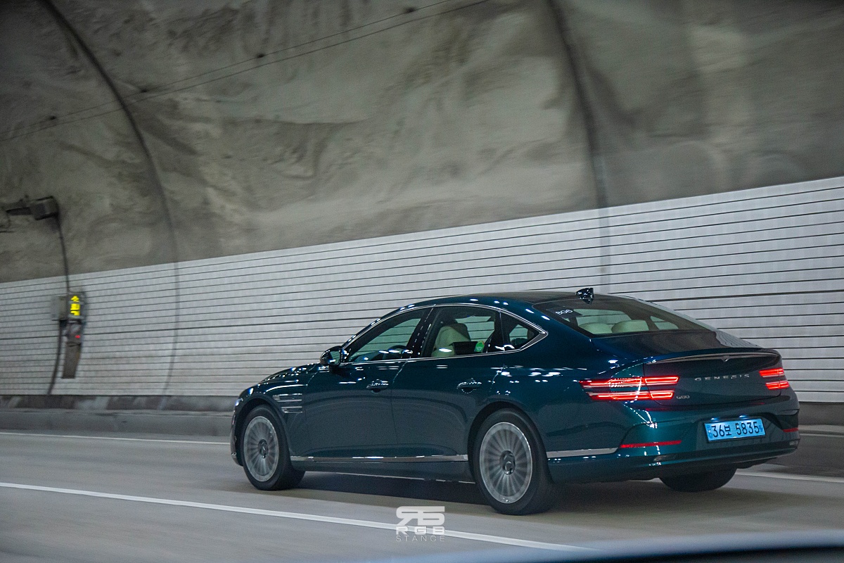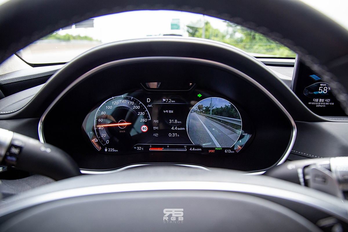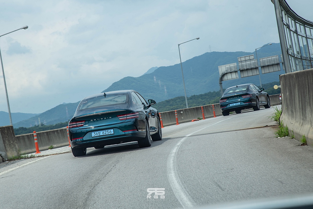 고속도로로 올라가는 순간, 질주본능을 너무나도 쉽게 자극해버린다. 전희 없이 절정으로 치닫는 쾌감이 매우 인상적이며, 스포츠모드로 드라이브 모드를 변경하면, 에르고 시트가 옆구리를 꽉 조여주는데, 코너를 돌아나갈 때, 아주 안정적인 느낌이다. 일반 국도에서 요철을 넘을 때에도 상당히 부드러운 감성을 보여주는데, 일반적으로 기존 내연기관차에서 전기차로 바꿀 때, 리어쪽 승차감이 많이 하드한 것과 비교해 매우 부드러운 승차감을 보여주고, 코너에서 경험하는 핸들링 감각은 고급스럽고 편안하다. 특히, 코너를 돌아나갈 때의 느낌이 좋은데, G80 전동화 모델에 적용된 ‘다이나믹 토크 벡터링(eDTVC)’ 기능으로, 제동력과 모터의 구동력을 이용해 각 휠에 토크를 분배하여 코너에서 더욱 날카로운 핸들링을 보여준다.