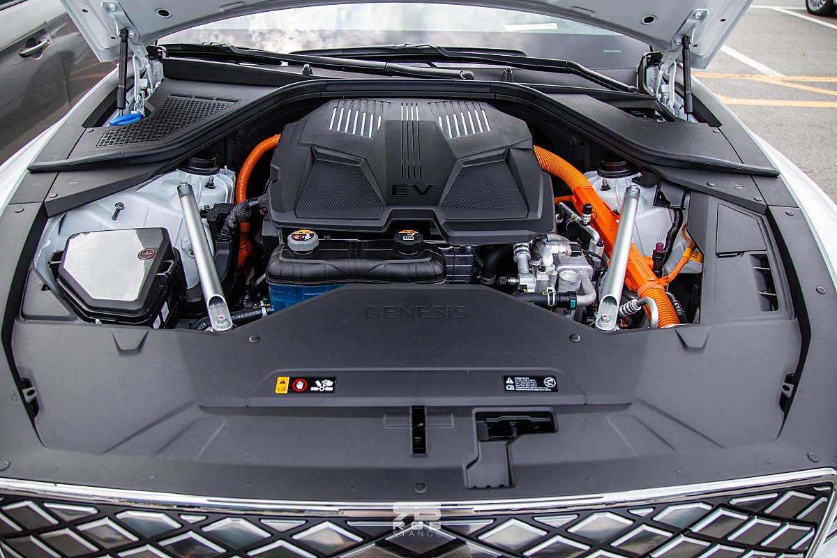 요즘의 전기차는 배터리 효율을 고려해 전기차 전용 플랫폼들을 사용하고 있다. 하지만, G80 전동화 모델의 경우에는 기존의 G80 의 프레임을 그대로 사용하면서 전기차로 바꾼 점이 눈에 띈다. 사륜구동 단일모델로 운영되는 제네시스 G80 전동화 모델의 출력은 380마력, 700Nm 으로, 아주 강력한 성능을 보여주며, 전륜과 후륜 각각 350Nm 의 토크가 더해져 제로백 4.9초의 성능과 함께 1회 충전으로 427km 의 거리를 주행할 수 있다는 점이, 전용 플랫폼이 아님에도 상당한 수준의 성능을 이끌어냈다는 점에서 놀랍다고 할 수 있다.