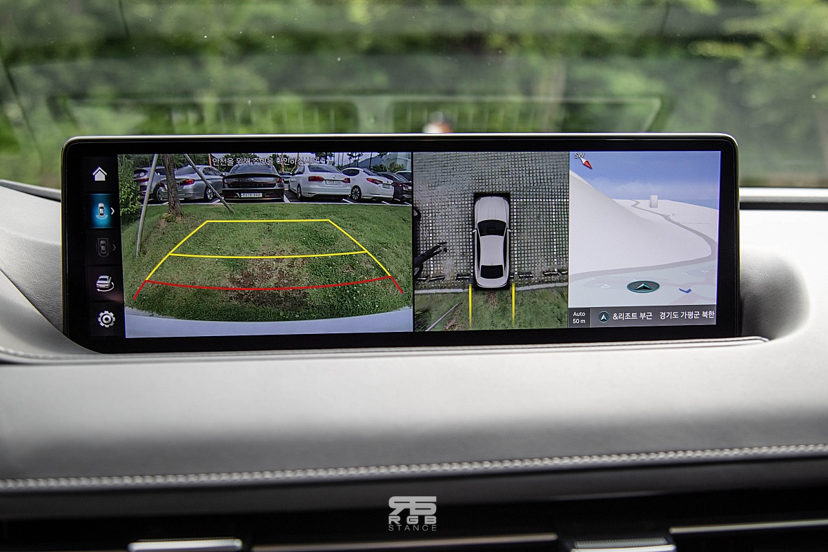 실내 디자인 역시 G80 모델과 큰 차이를 보이지는 않는다. 레이아웃은 그대로이지만, 전기차답게 진보된 편의사양이 눈에 띈다. G80 전동화 모델에 탑재된 증강현실 내비게이션은 직관성을 높인 한편, 다양한 정보를 제공해주며, 고속도로 주행보조 2(HDA 2) 기능 등이 추가된 동시에 에르고 모션 시트 및 공기청정 기능 등이 들어가 있어서 운전을 편안하게 만들어준다. 이렇게 실내외에서는 큰 변화를 느끼기 힘든데, 전동화 모델로 바뀌고, 운전시에 느껴지는 부분이 완전히 달라졌다.