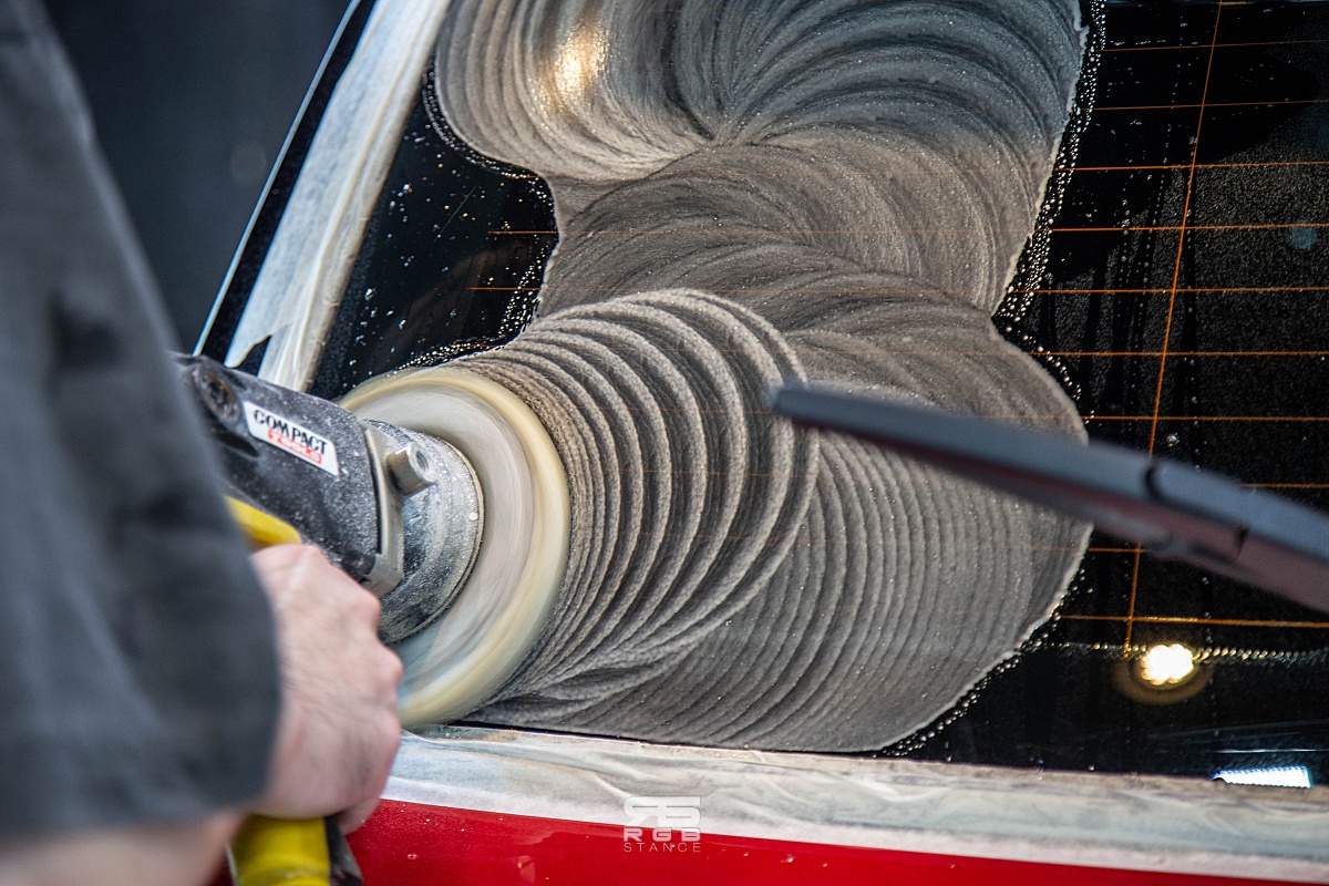 유막제거작업은 전문 약재와 기구를 사용해 진행된다. 우선, 기본적인 세차를 하고, 도장면에 손상이 없도록 마스킹 작업을 꼼꼼하게 해준 다음, 유막제거 약재를 기계를 사용해 유막제거에 들어간다. 너무 많은 힘을 주어서도 안되고, 적당한 힘으로 유막제거를 해주는데, 틈새의 작은 부분은 전용 공구를 사용해 남아있는 유막을 모두 제거해준다. 참고로, 토크렌치처럼 생긴 이 작은 기기는 루페스 빅풋이라는 장비로, rpm 컨트롤이 되며, 국내 몇대 없는 장비라고 한다. Rpm 조절이 필요한 이유도 시공 부위에 따라서 다르게 써야 하기 때문이다.