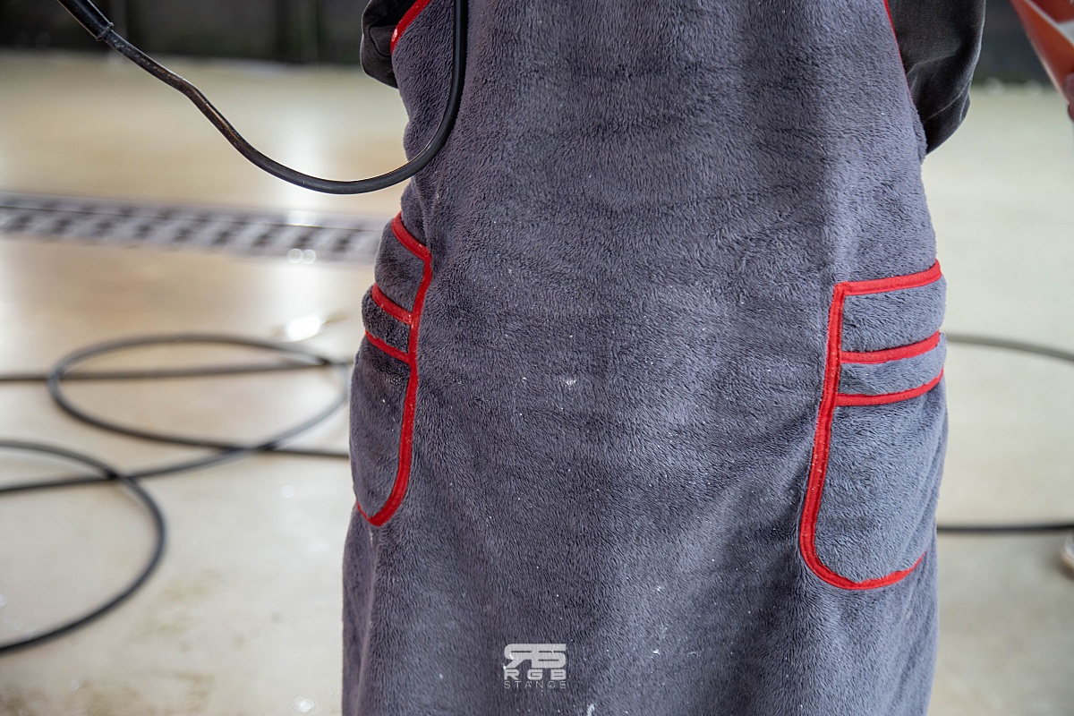 그리고, 눈에 띄는 부분은 작업시에 앞치마를 두르는데, 차량에 흠집이 생기지 않는 부드러운 소재로 만들어진 앞치마로, 작업시에 조금씩 발생할 수 있는 흠집을 방지해줄 수 있다.