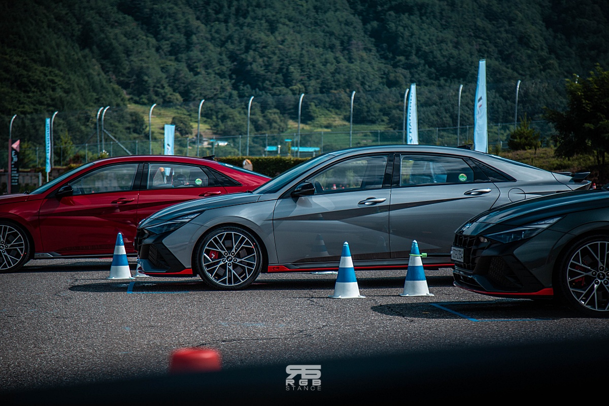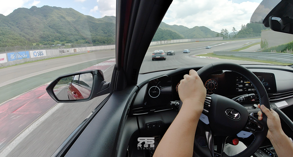 공도에서 느낄 있는 요철을 지날 , 일반적인 아반떼와 차이를 느낄 정도로 적당한 편안함을 느낄 있는데, 전자제어 서스펜션이 드라이브 모드에 따라 감쇠력을 조절해주며, 드라이브 모드를 스포츠, N 모드로 변경해보면 다이나믹해진 엔진 사운드와 강렬한 배기사운드. 그리고, 스티어링휠에서부터 느껴지는 묵직한 감성이 도로를 만만하게 만들어준다. 그리고, 이러한 자신감은 서킷주행의 갈증을 불러왔다. 공도에서는 편안함과 다이나믹한 핸들링 감성 승차감을 보여주는데, 서킷이라면 얼마나 재밌을까?