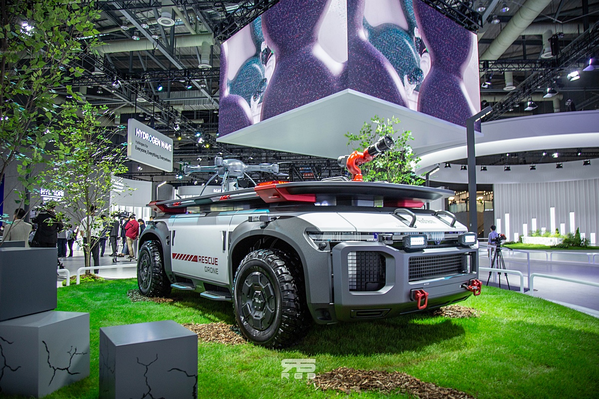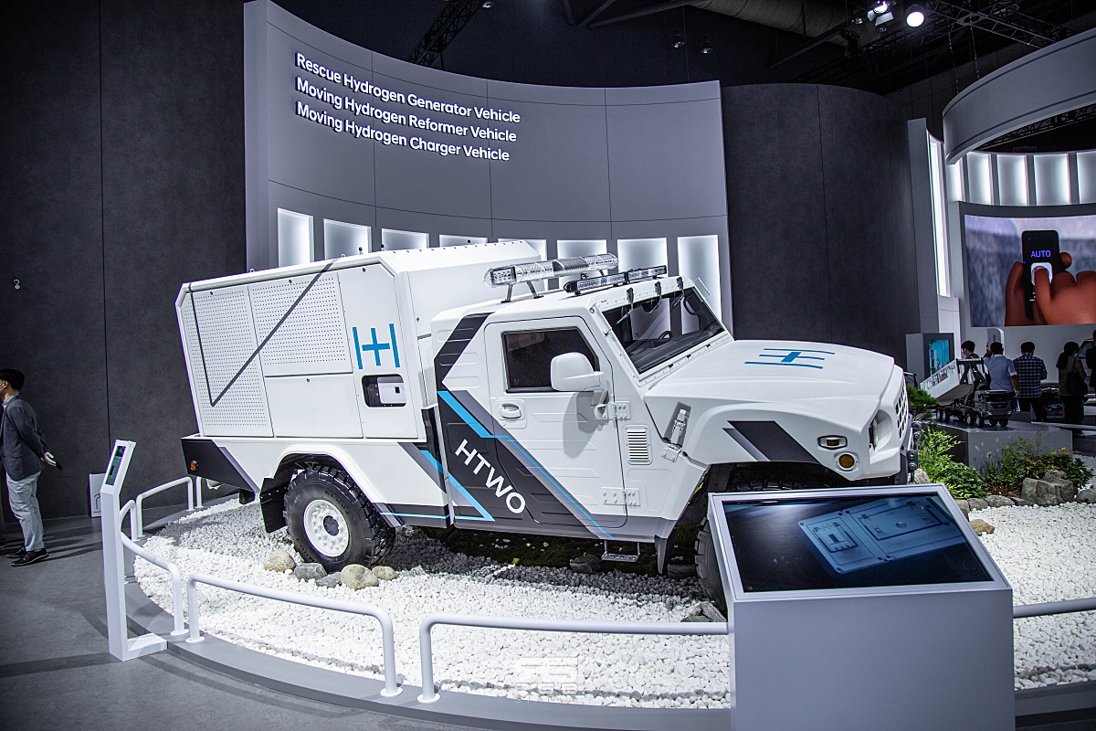 또한, 연료전지 활용 전력 공급용 긴급 구호 및 재난지원차량 역시 인상적인데, 기아의 군용차량을 개조해 만든 이동형 전기차 충전기로, 사륜구동으로 오프로드 성능을 갖추었다. 전기가 많이 사용되는 시점에, 자연재해 등으로 전기의 활용이 원활하지 못할 때에 사용할 수 있다는 점과 함께, 군용으로도 활용도가 높다는 점에서 눈여겨 볼만하다.