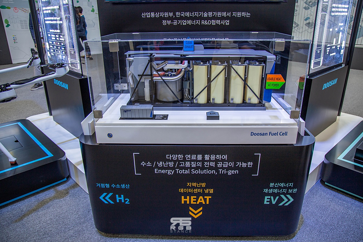 처음 전시회장으로 들어가게 되면, 수소 인프라 회사들이 눈에 띈다. SK E & S 를 시작으로, 한국가스공사, 두산 및 포스코 등이 눈에 띄는데, 이 외에도 부품소재 업체들도 눈에 띈다. 일단, 수소충전소가 어디에 있는지 알 수 있는 시스템 시연과 함께, 미래 수소사회를 위한 인프라 및 수소 유통 계획들이 눈에 들어온다. 수소의 생산과 저장, 운송, 활용까지 이어지는 부가가치 사슬 전반에 대한 계획들이 생각보다 방대하고 긴밀하게 진척되고 있다는 것을 알 수 있는데, 단순히 모빌리티에 수소를 사용하는 것 뿐만 아니라, 건물/주택용 연료전지와 스마트팜 등 다양한 사업모델들이 도입되고 있다는 것을 알 수 있다.