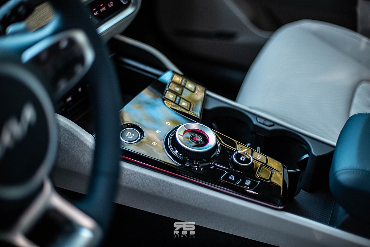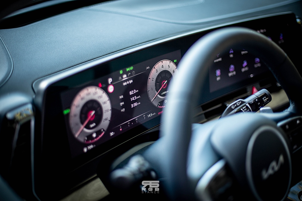 특히, K8 에서 사용된 파노라믹 커브드 디스플레이가 인상적인데, 12.3인치의 계기판과 인포테인먼트 시스템 화면이 하나의 화면처럼 곡선으로 연결되어 있으며, 이는 국내 준중형 SUV 에서 최초로 적용된 것이다. 그리고 역시나 K8 에서 본 것처럼, 인포테인먼트 시스템과 공조 기능을 통합조작할 수 있는 터치 방식의 전환 조작계가 눈에 띈다. 그런데, 이 버튼의 사용이 쉽게 익숙해지지는 않는다.