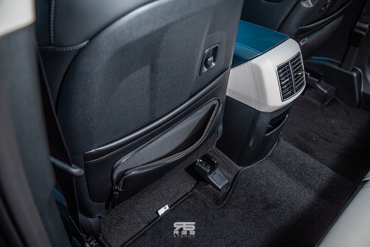 이 외에도 다이얼 타입의 전자식 변속기(SBW) 가 사용상의 편의성을 보여주며, 대형 콘솔은 10인치 태블릿까지 수납될 정도로 용량이 크다. 그리고, 가변색상 무드램프가 적용되어 고급스러운 감성을 경험할 수 있으며, 고급스러운 가죽시트는 부드럽고 안락한 느낌을 준다. 하지만, 하이그로시 재질은 지문과 먼지가 많이 보여 소재의 변경도 괜찮을 것으로 보여진다.