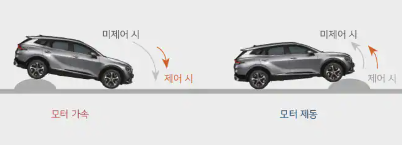 E-Ride 는 전기모터를 이용해 과속 방지턱 및 둔턱을 통과할 때, 운동방향과 반대 방향의 관성력을 발생하도록 모터를 제어해 쏠림을 완화하고 승차감이 부드럽다. E-Handling 기능도 모터를 사용해 차선변경시 차량 거동을 더욱 부드럽게 만들어주는데, 모터의 가감속을 통해 전후륜의 하중을 조정하여 민첩성을 개선시켜 주행성능을 개선시켜준다. 그냥 아무 생각 없이 타고 다닐때는 잘 모르다가, ‘어? 차가 왜 이리 편하지? 쏠림이 왜 없지?’ 라는 생각이 들었는데, 이렇게 전기모터를 이용하는 방법을 새롭게 적용시켜 승차감을 향상시켰을 줄은 몰랐다. 아주 뛰어난 승차감으로, 예전에는 전혀 경험하거나, 상상도 못했던 SUV 의 움직임이다.