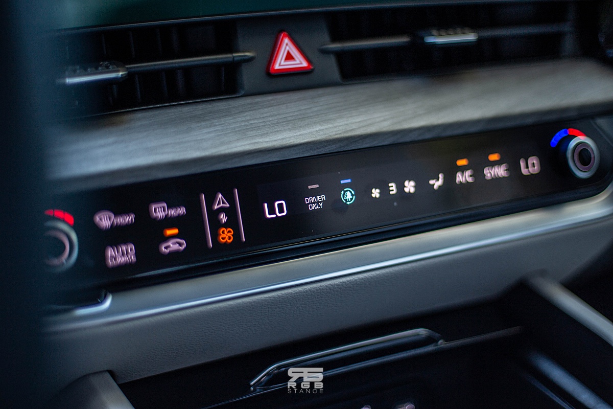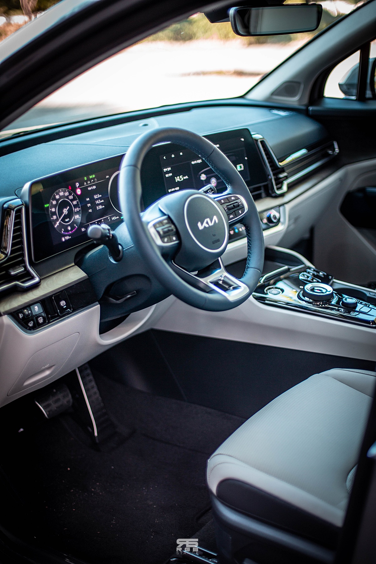특히, K8 에서 사용된 파노라믹 커브드 디스플레이가 인상적인데, 12.3인치의 계기판과 인포테인먼트 시스템 화면이 하나의 화면처럼 곡선으로 연결되어 있으며, 이는 국내 준중형 SUV 에서 최초로 적용된 것이다. 그리고 역시나 K8 에서 본 것처럼, 인포테인먼트 시스템과 공조 기능을 통합조작할 수 있는 터치 방식의 전환 조작계가 눈에 띈다. 그런데, 이 버튼의 사용이 쉽게 익숙해지지는 않는다.