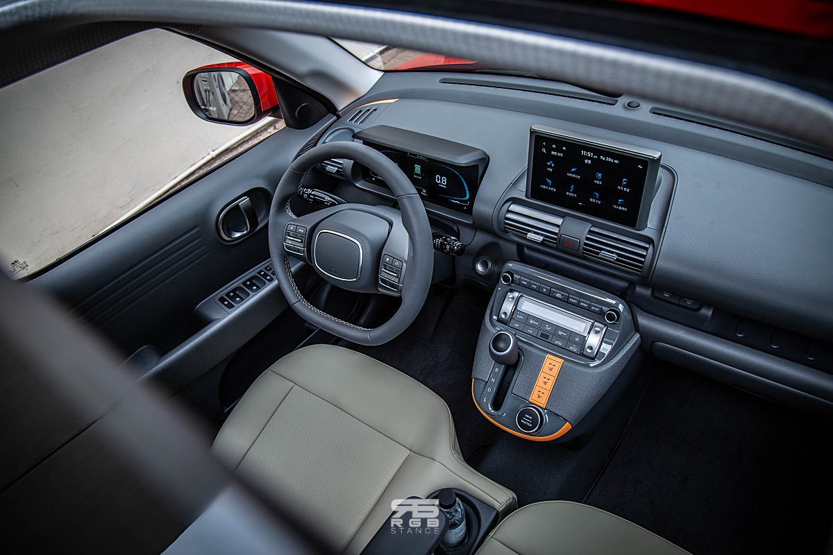 어쨌거나 시승을 한 모델은 캐스퍼 액티브 인스퍼레이션 모델로, 시트와 기어노브에 오렌지 포인트가 들어가 있었으며, 4.2인치 클러스터와 8인치 내비게이션이 적용되었고, 풀오토 에어컨은 통풍시트와 열선시트가 제공되어 편의성이 상당하다. 여기에 스티어링휠 열선까지 있을 뿐 아니라, 앰비언트 라이트까지 적용되어 고급스러운 감성을 만들어준다. 경차에서는 사치스럽기까지 한 부분이다.