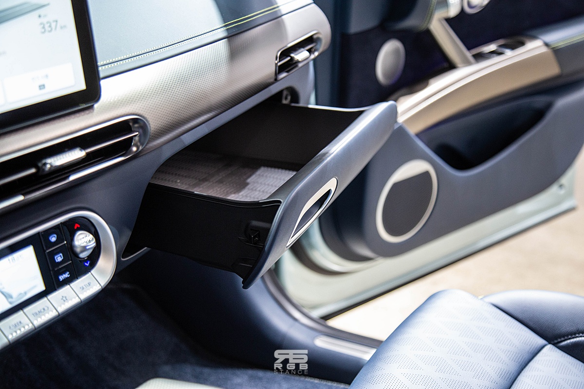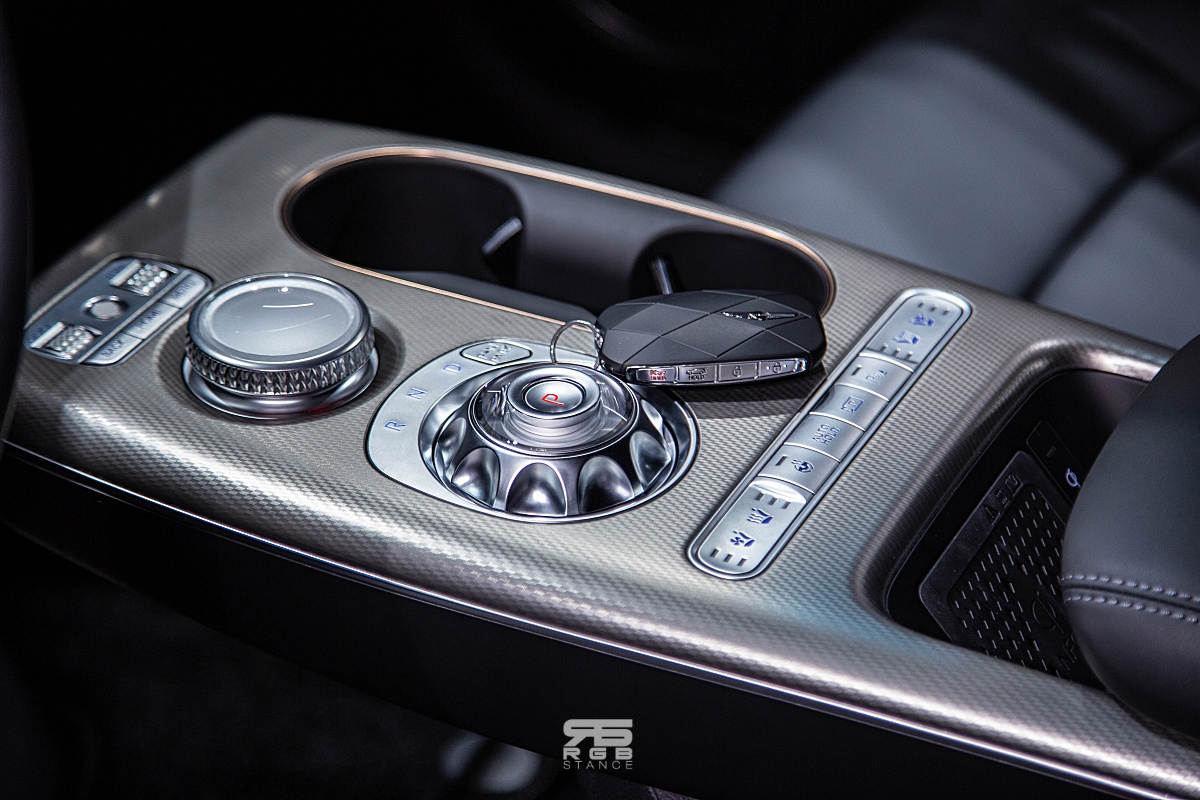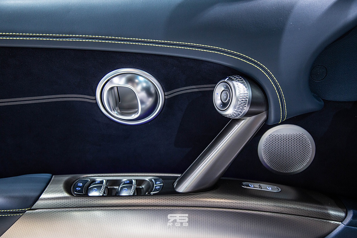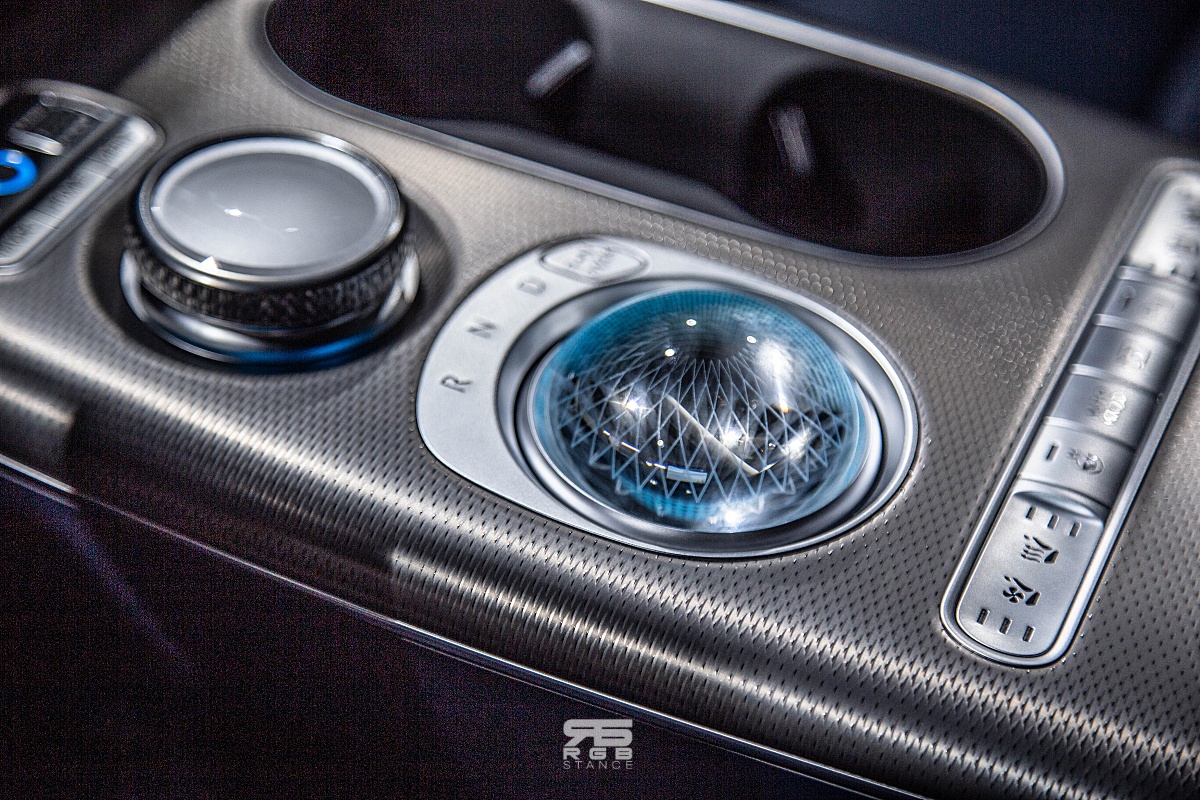 사이드미러를 조정하는 조작계 역시 원형으로 다이얼처럼 돌리게 만들어져 있으며, 컵홀더와 도어손잡이 역시 원형으로 크리스탈 스피어와 디자인적 통일감을 더해준다. 그리고, 크리스탈 스피어아 있는 플로팅 콘솔은 말 그대로 떠 있는 듯한 디자인으로 실내 공간감이 독특하며, 와이드하고 슬림한 크래쉬 패드는 쾌적한 실내 분위기를 연출해준다.