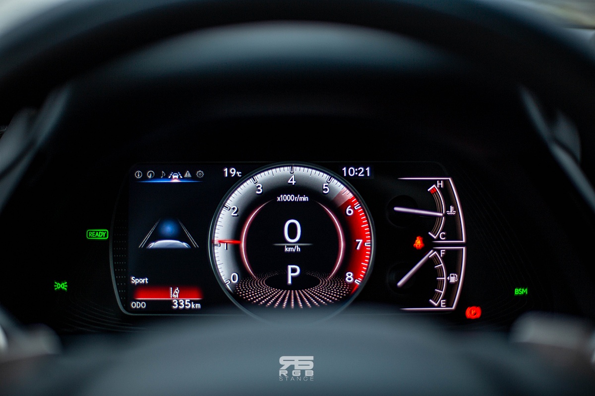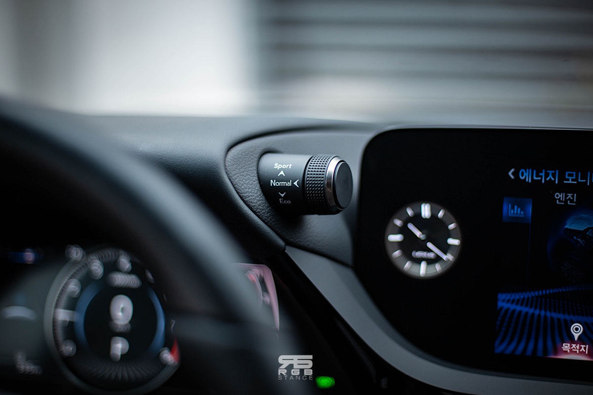 드라이브 모드는 클러스터 상단에 위치한 다이얼로 바꿀 수 있다. 상당히 독특한 구성인데, 스포츠 모드에서는 계기판의 모습이 강렬한 레드 컬러와 함께 자극적으로 바뀌고, 소리가 조금 더 카랑카랑하게 느껴진다. 악셀링 반응이 조금 더 빠릿한 느낌이지만, F Sport 모델이 아닌 이상, 약간의 느낌적인 차이가 있을 정도다.