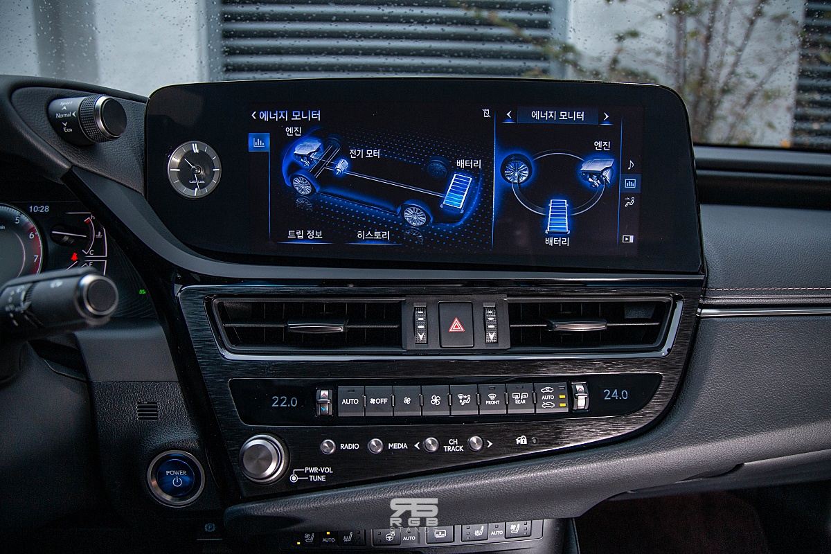 2개의 모터를 사용하는 렉서스 es300h 는 충전 상태에 따라 저속에서 모터만으로도 주행이 가능한 EV 모드가 있는 한편, 저속과 고속 모두에서 전기모터가 적극적으로 개입해 17.2km/L 의 복합연비를 보여준다.